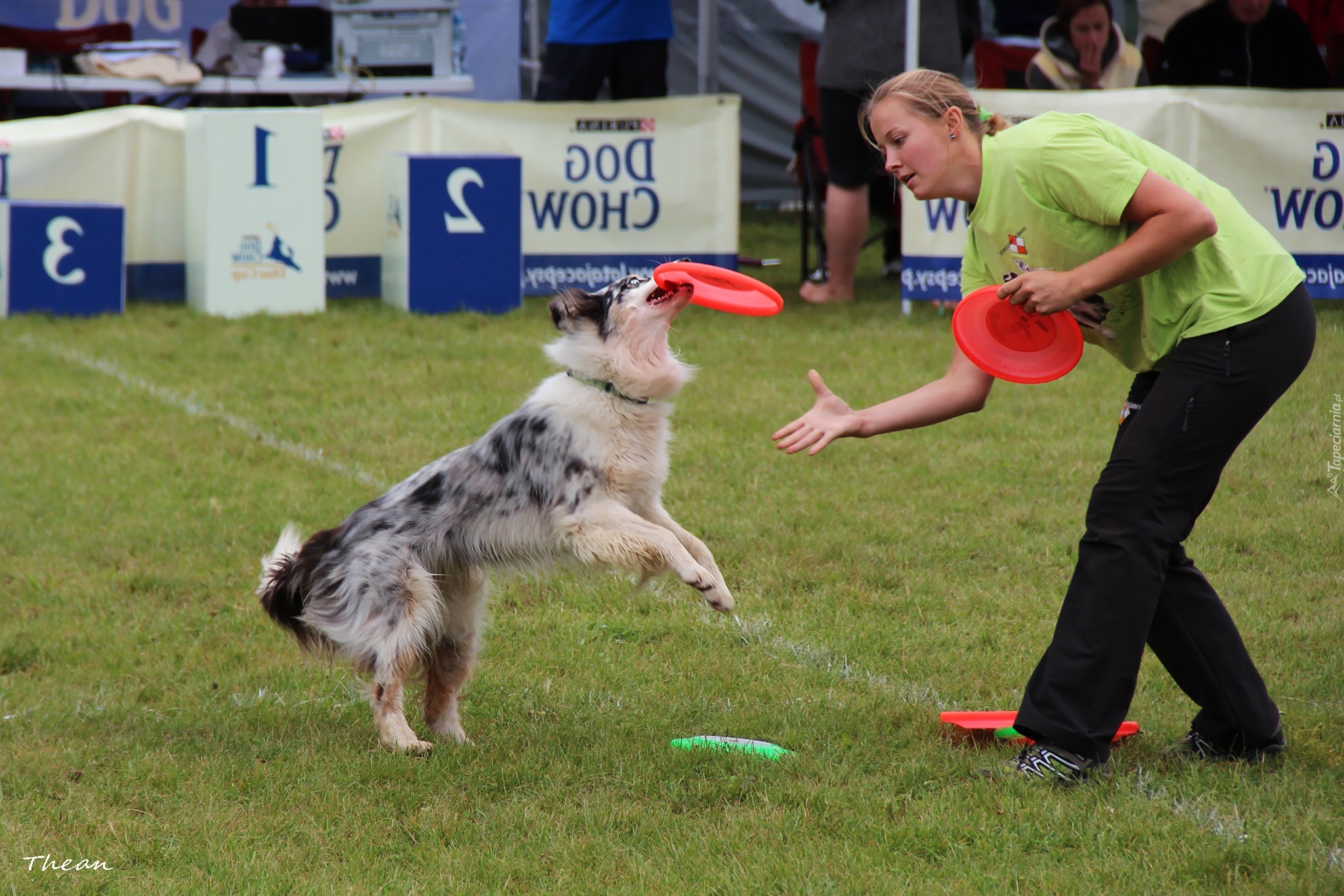 Edytor tapety: Pies, Border Collie, Frisbee, Kobieta
