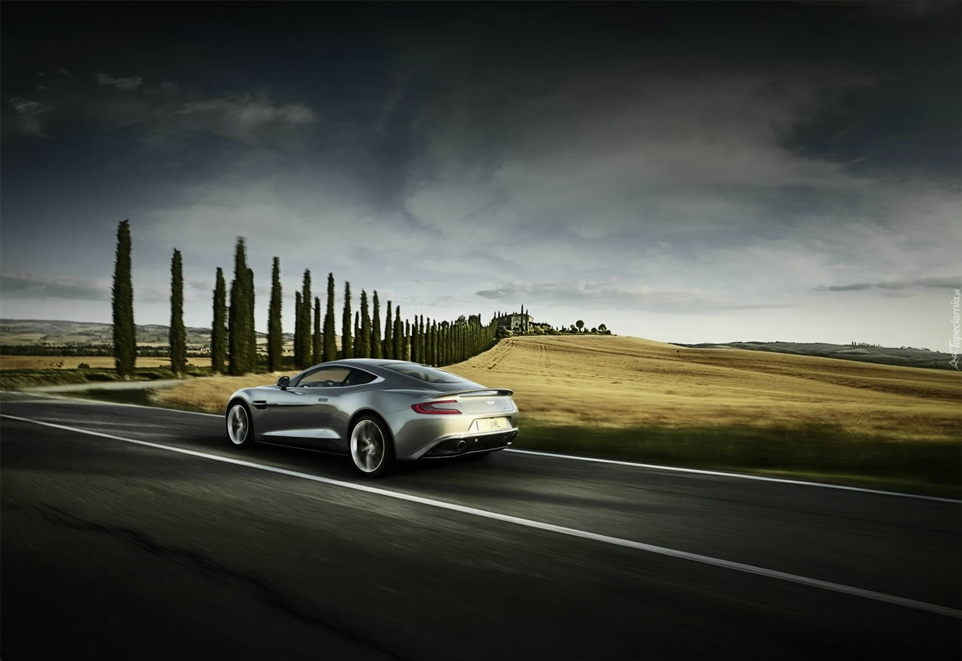 Edytor tapety: Aston Martin, 310, Vanquish, Pole, Droga, Drzewa