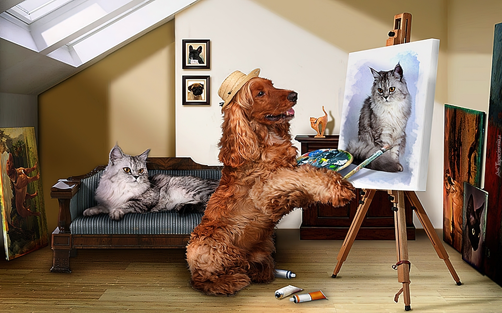 Edytor tapety: Kot, Pies, Portret, Cocker spaniel