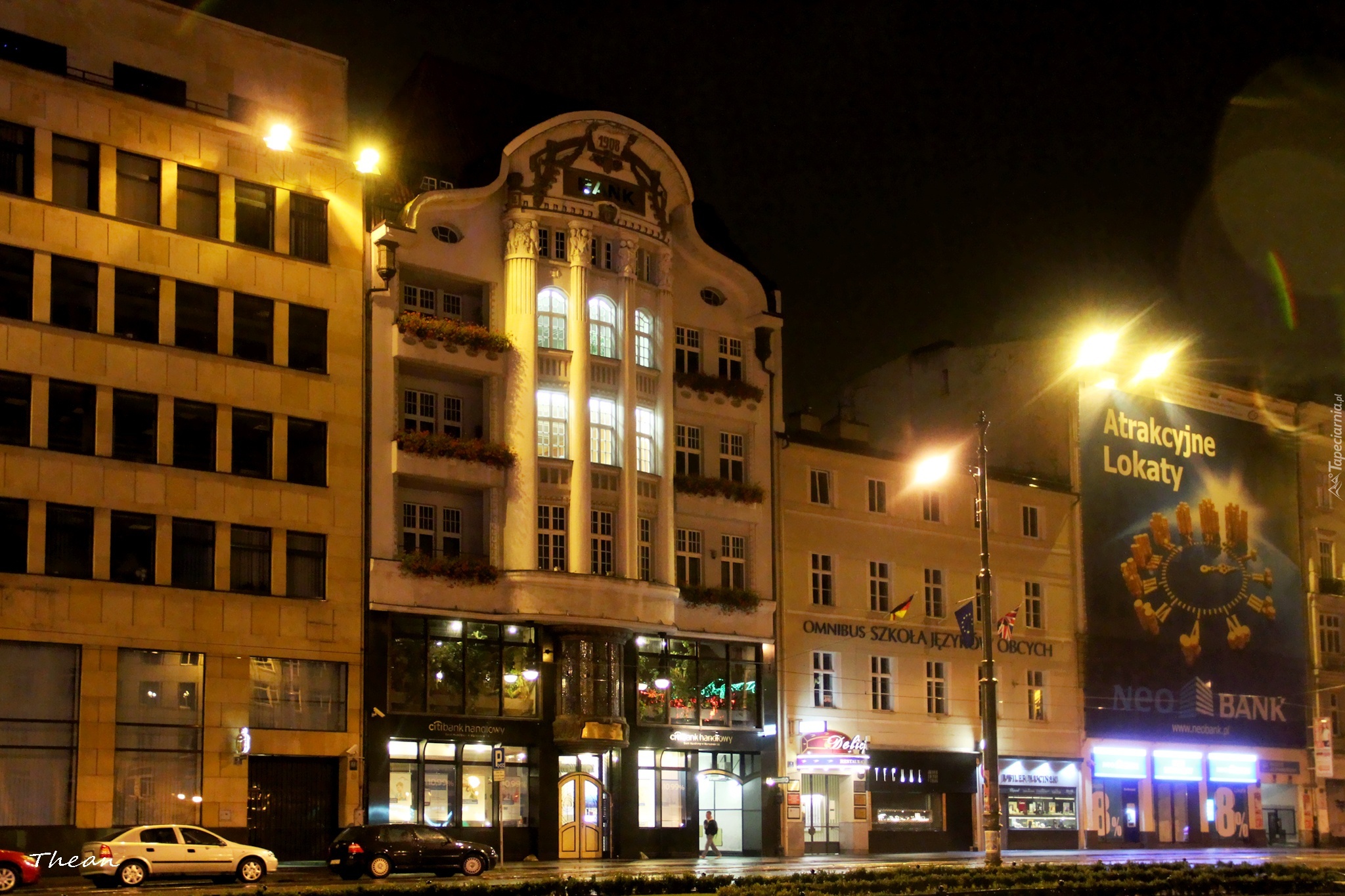 Edytor tapety: Ulica, Nocą, Poznań, Budynki, Centrum