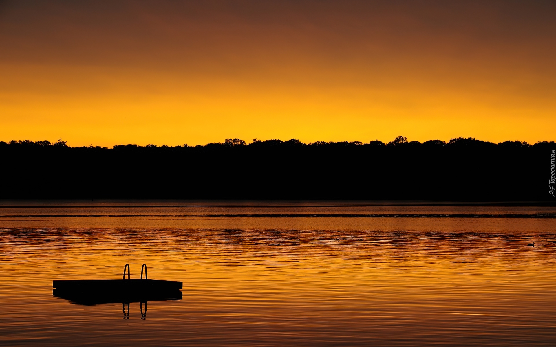 Edytor tapety: Jezioro, Lasy, Zapadający, Zmrok