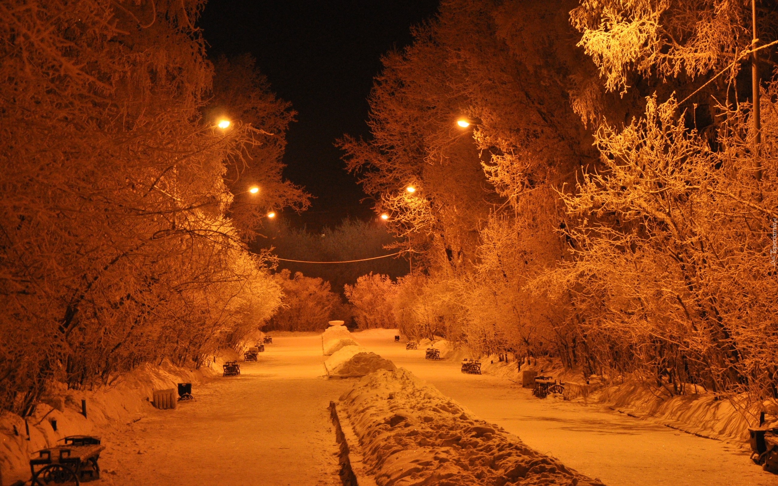 Edytor tapety: Park, Drzewa, Latarnie, Zima