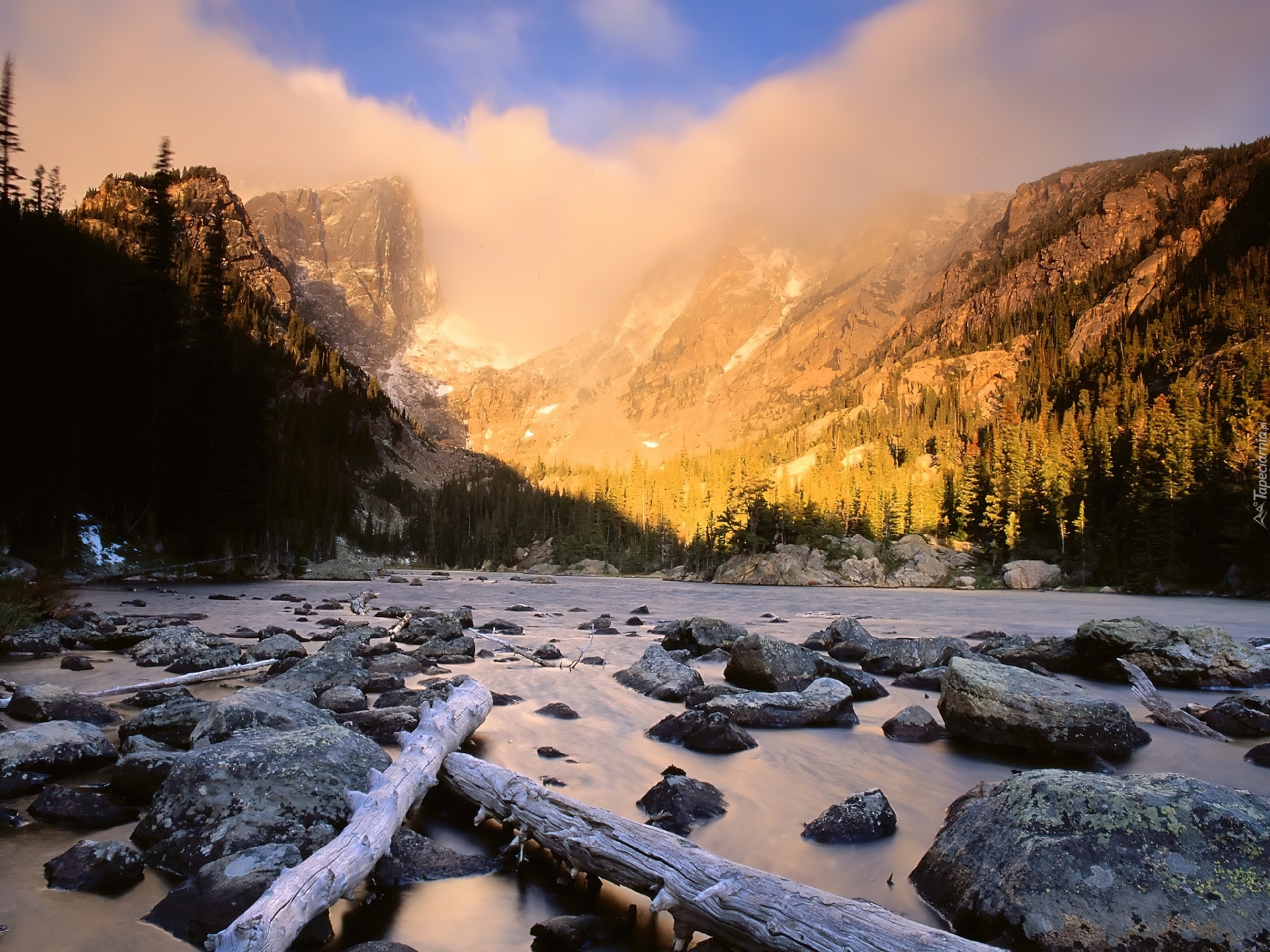 Edytor tapety: Kamienie, Lasy, Chmury