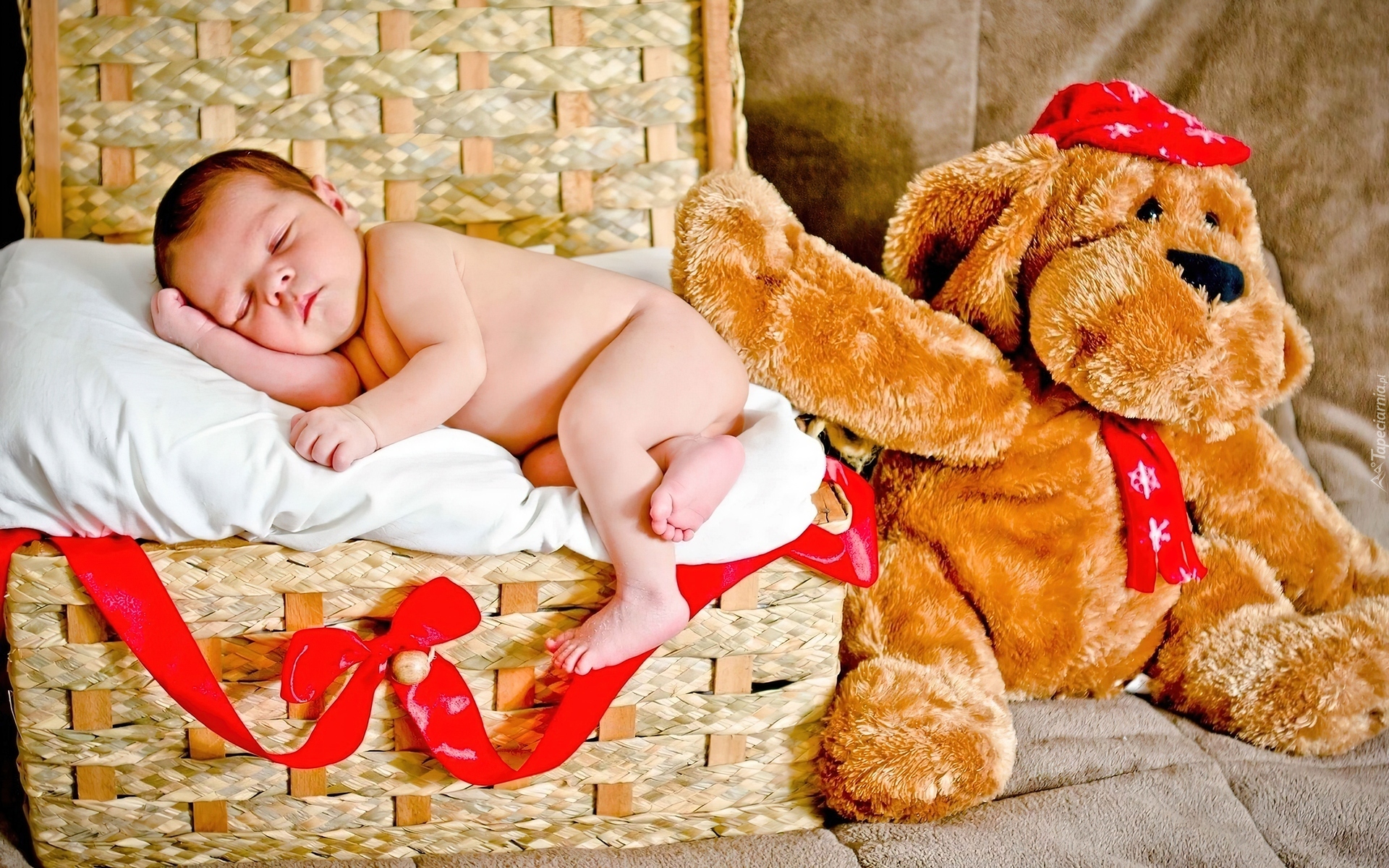 Edytor tapety: Niemowle, Kosz, Pluszak