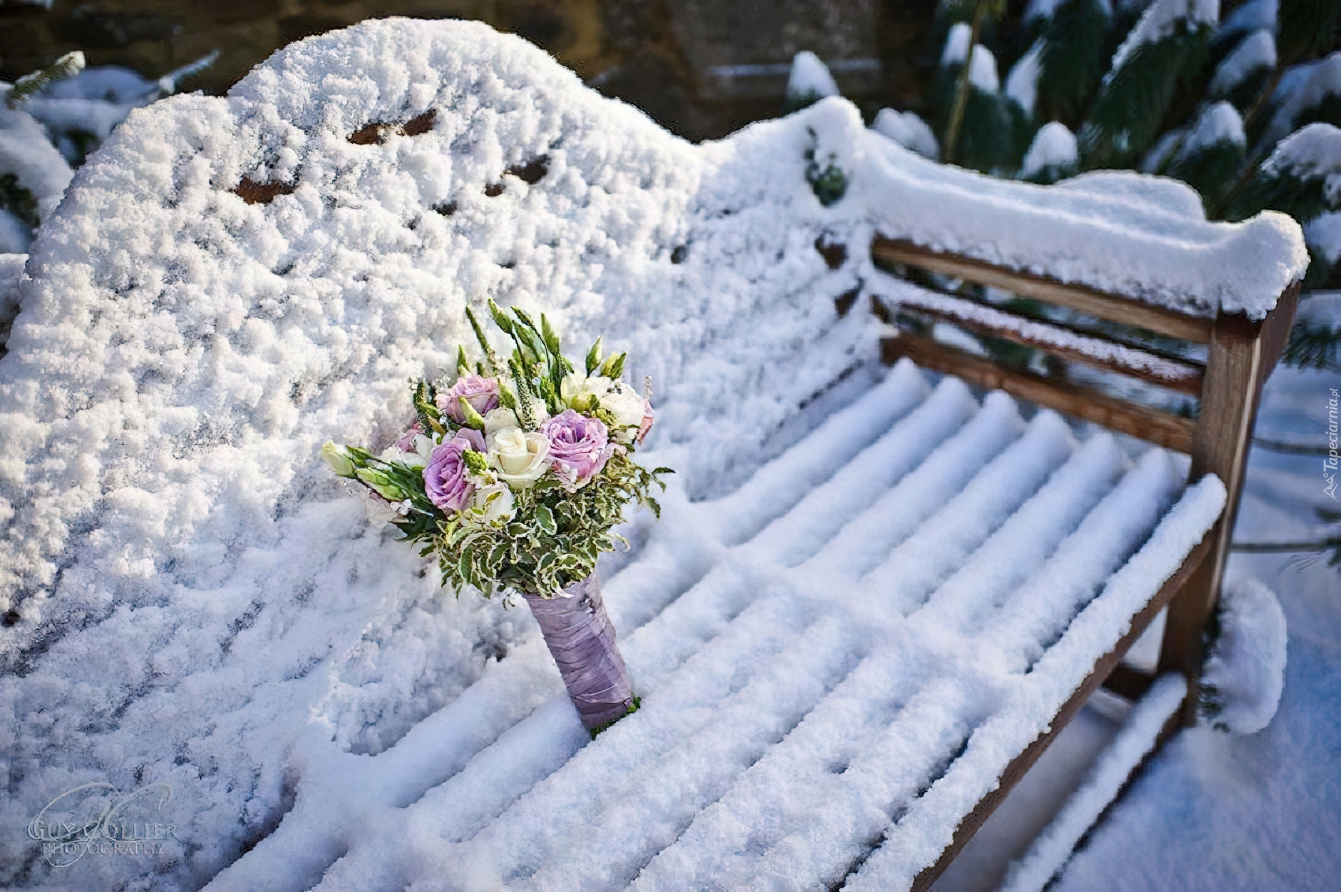 Edytor tapety: Bukiet, Kwiatów, Ławka, Zima