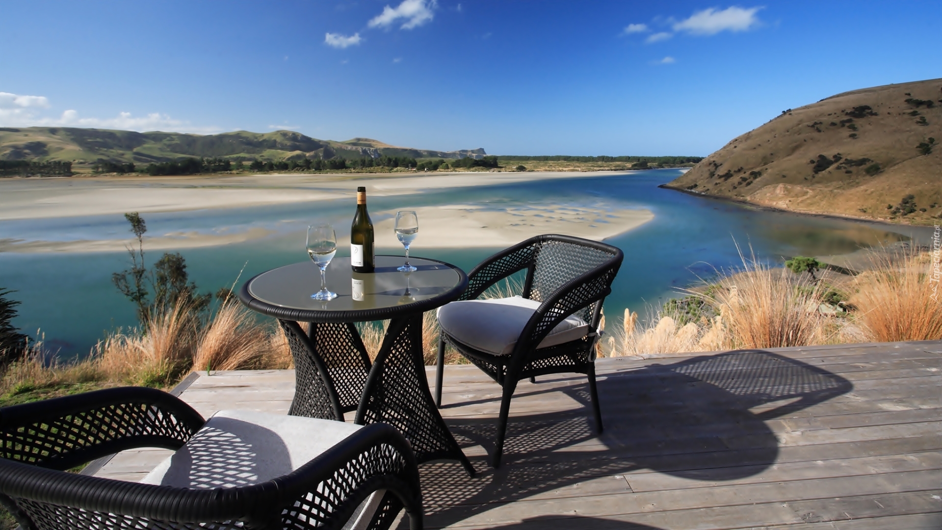 Edytor tapety: Rzeka, Wzgórza, Taras, Relaks