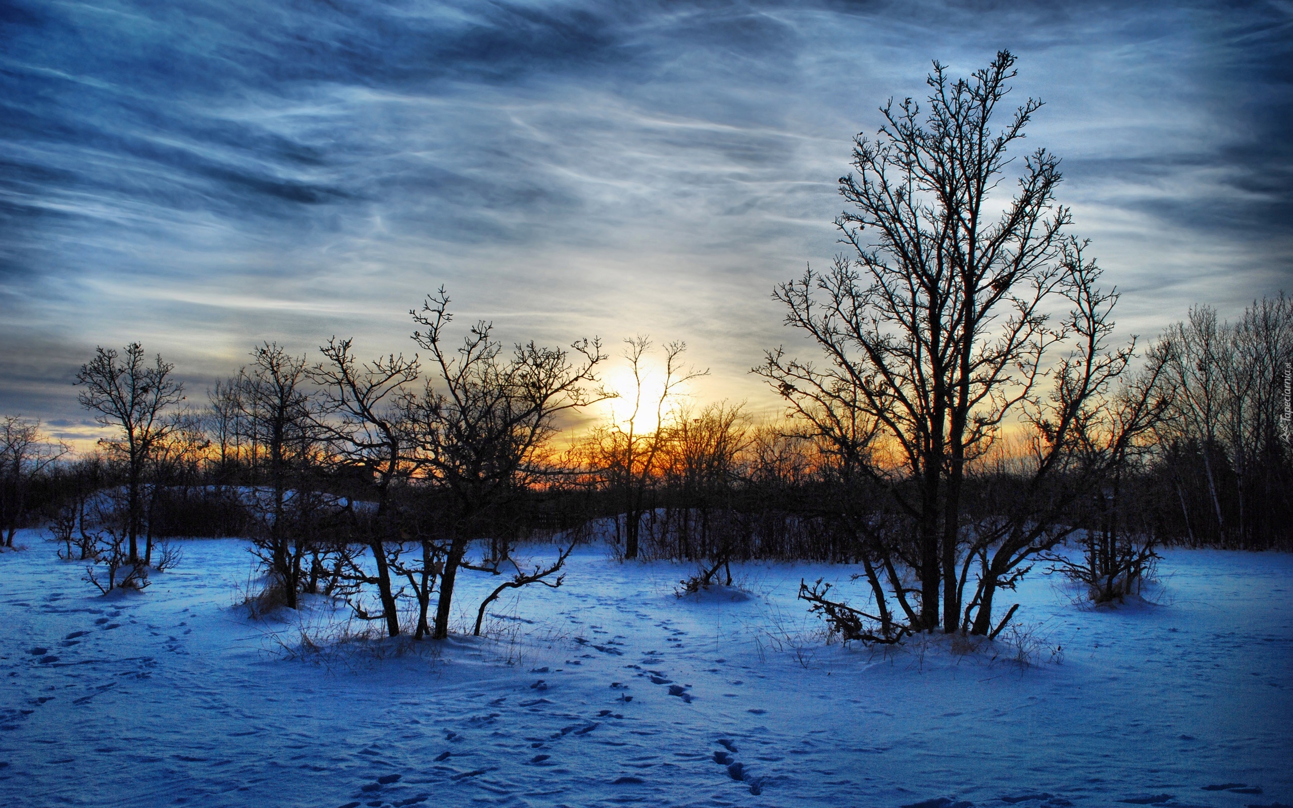 Edytor tapety: Wschód, Słońca, Krzewy, Śnieg