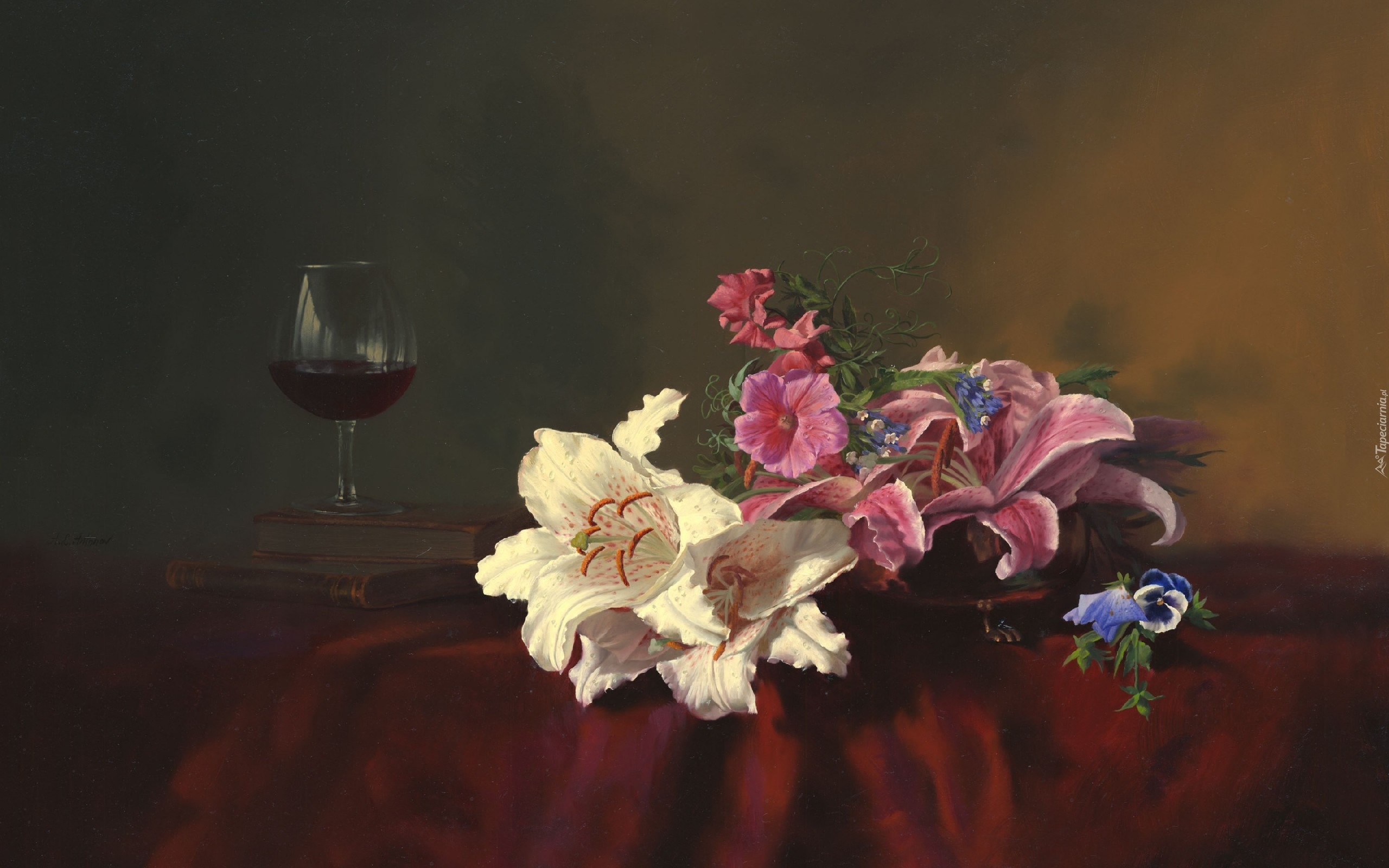Edytor tapety: Bukiet, Kwiatów, Lampka, Wina