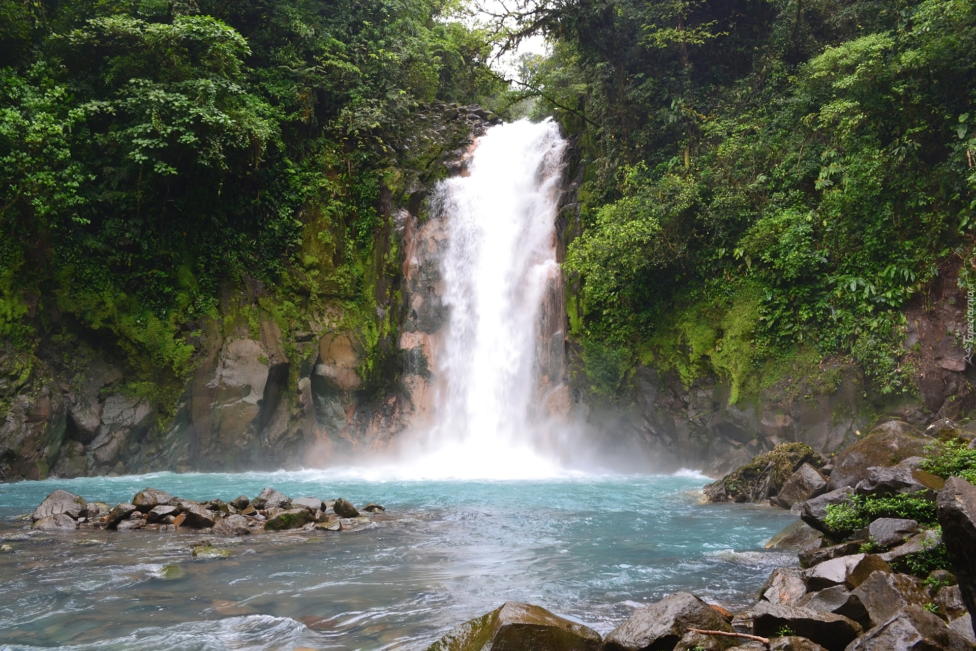 Edytor tapety: Wodospad, Skały, Drzewa