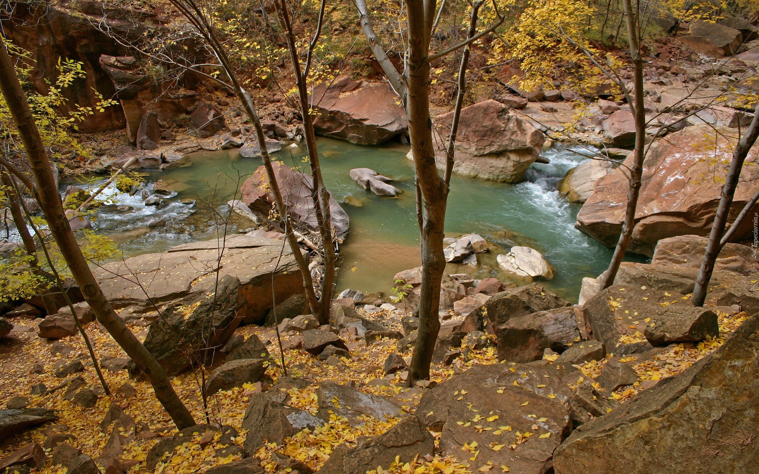 Edytor tapety: Górska, Rzeka, Skały, Drzewa
