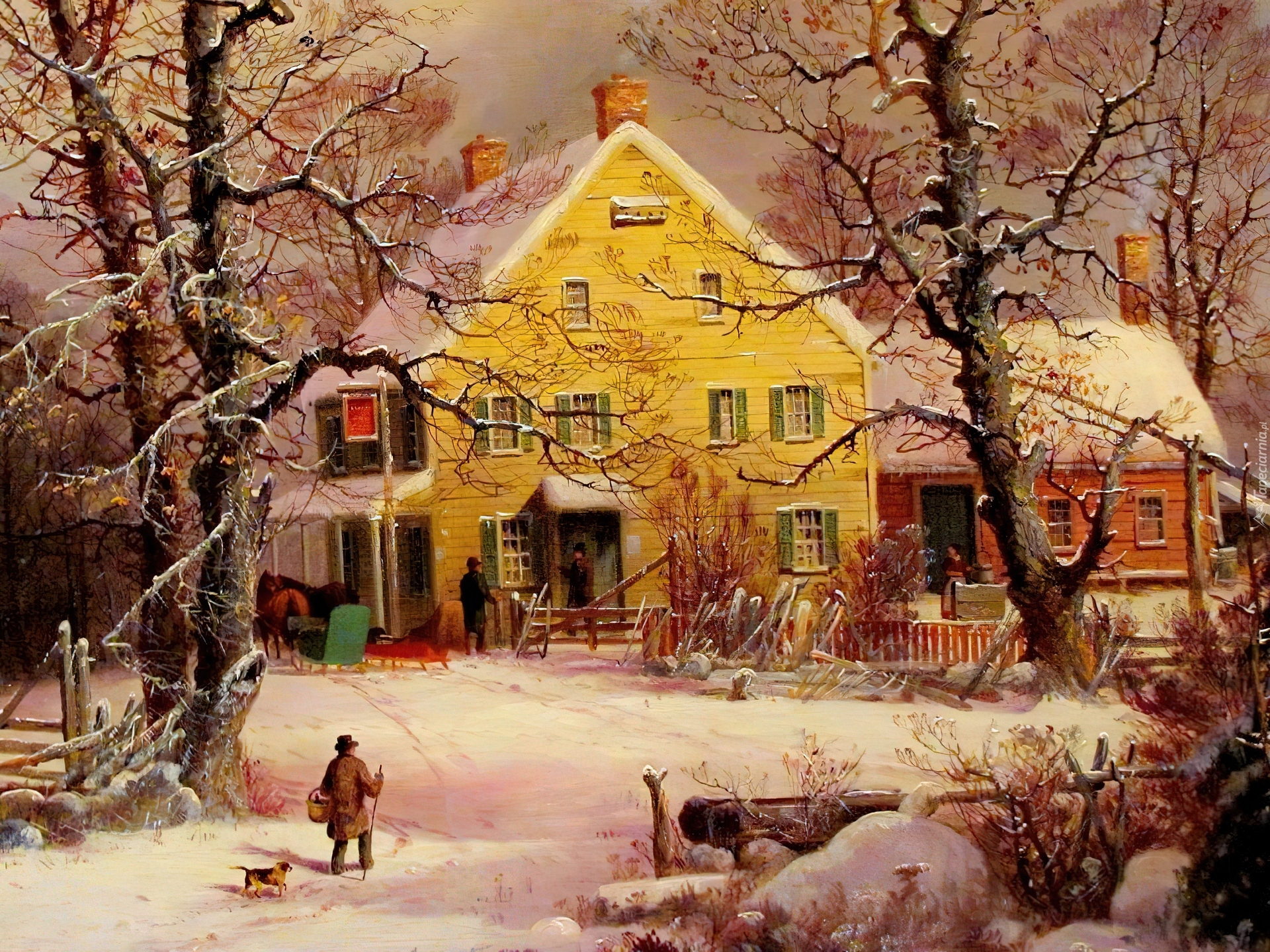 Edytor tapety: Dom, Drzewa, Zima
