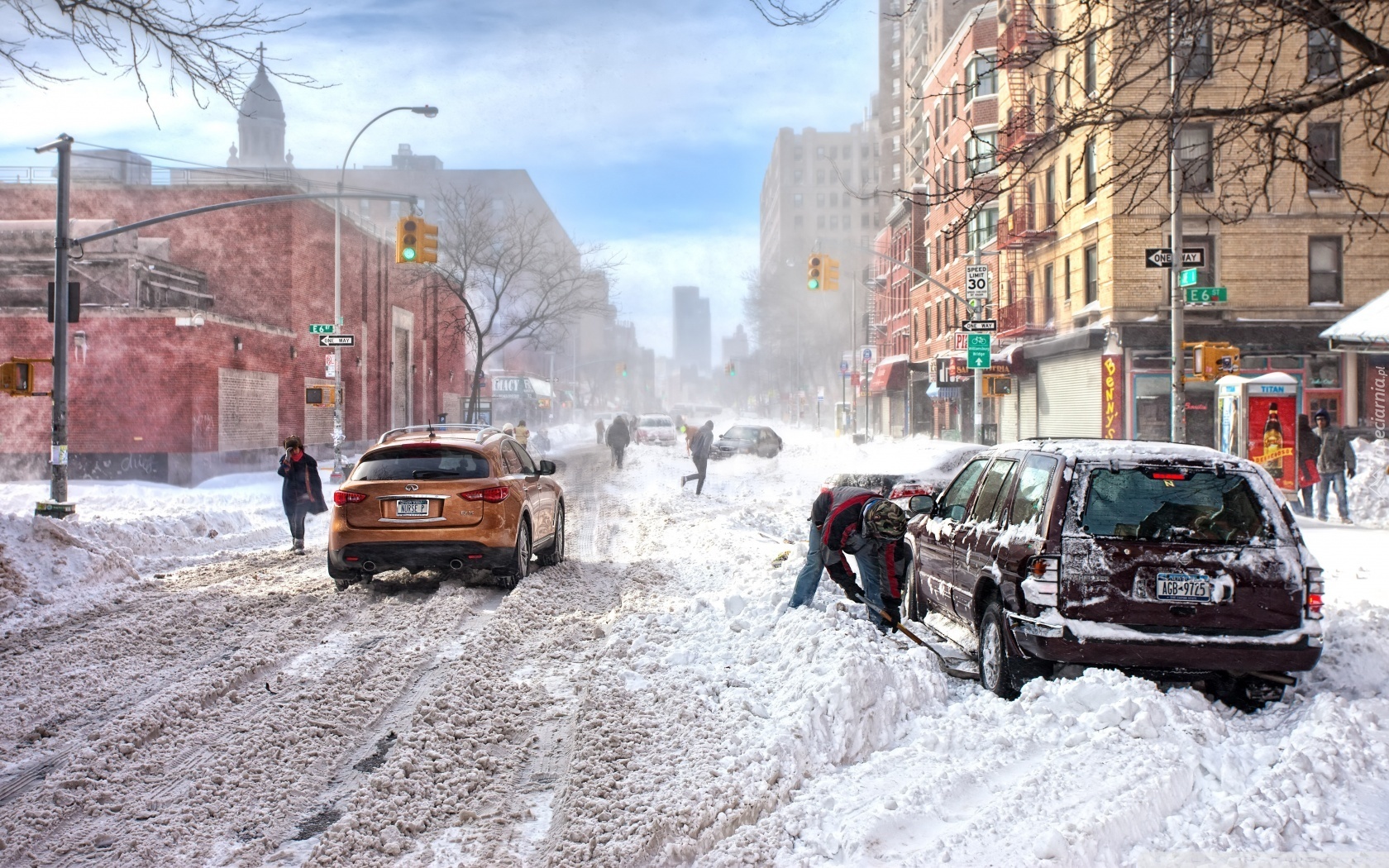 Edytor tapety: Ulica, Domy, Samochody, Zima