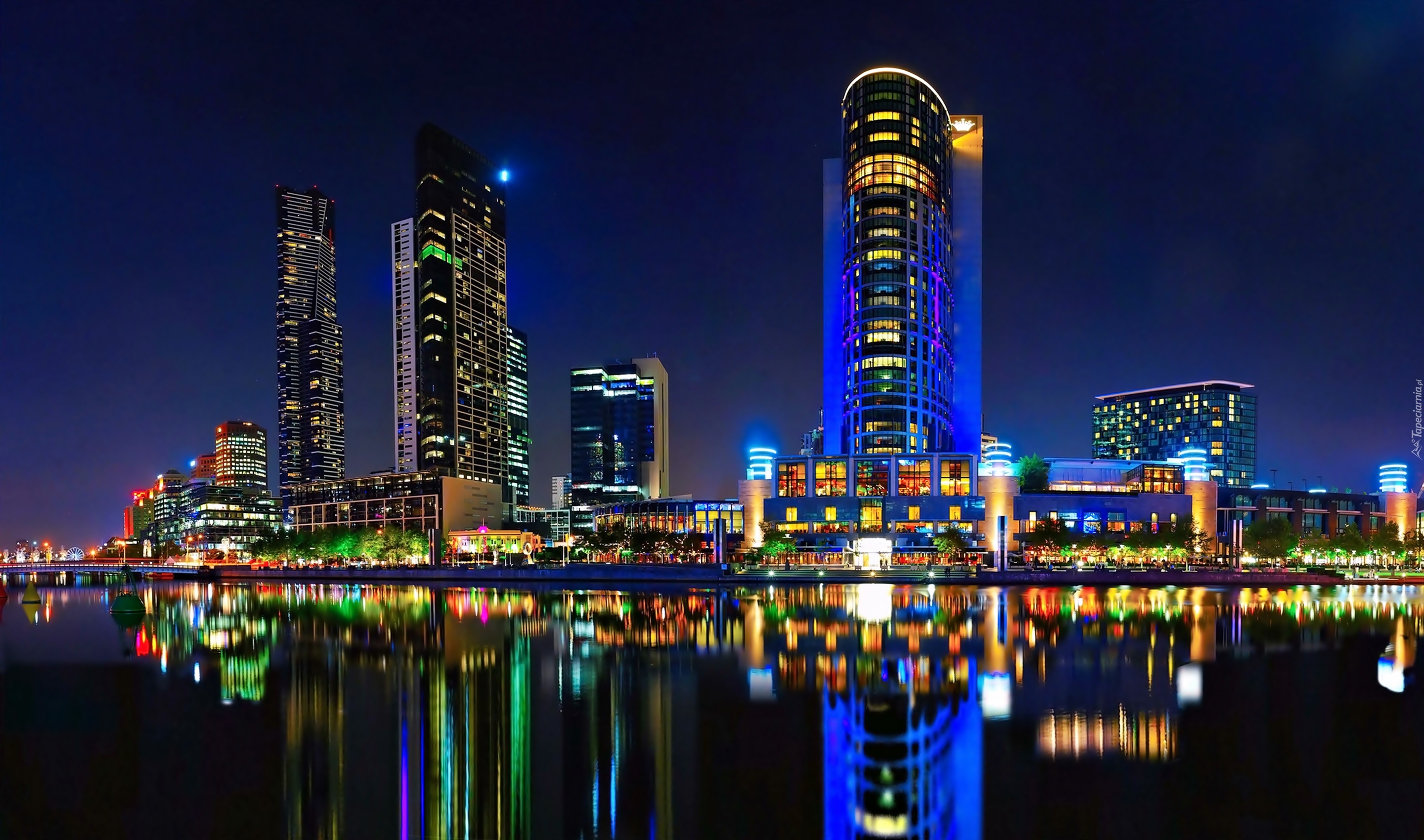 Edytor tapety: Brisbane, Miasto, Nocą, Drapacze, Chmur, Rzeka, Australia