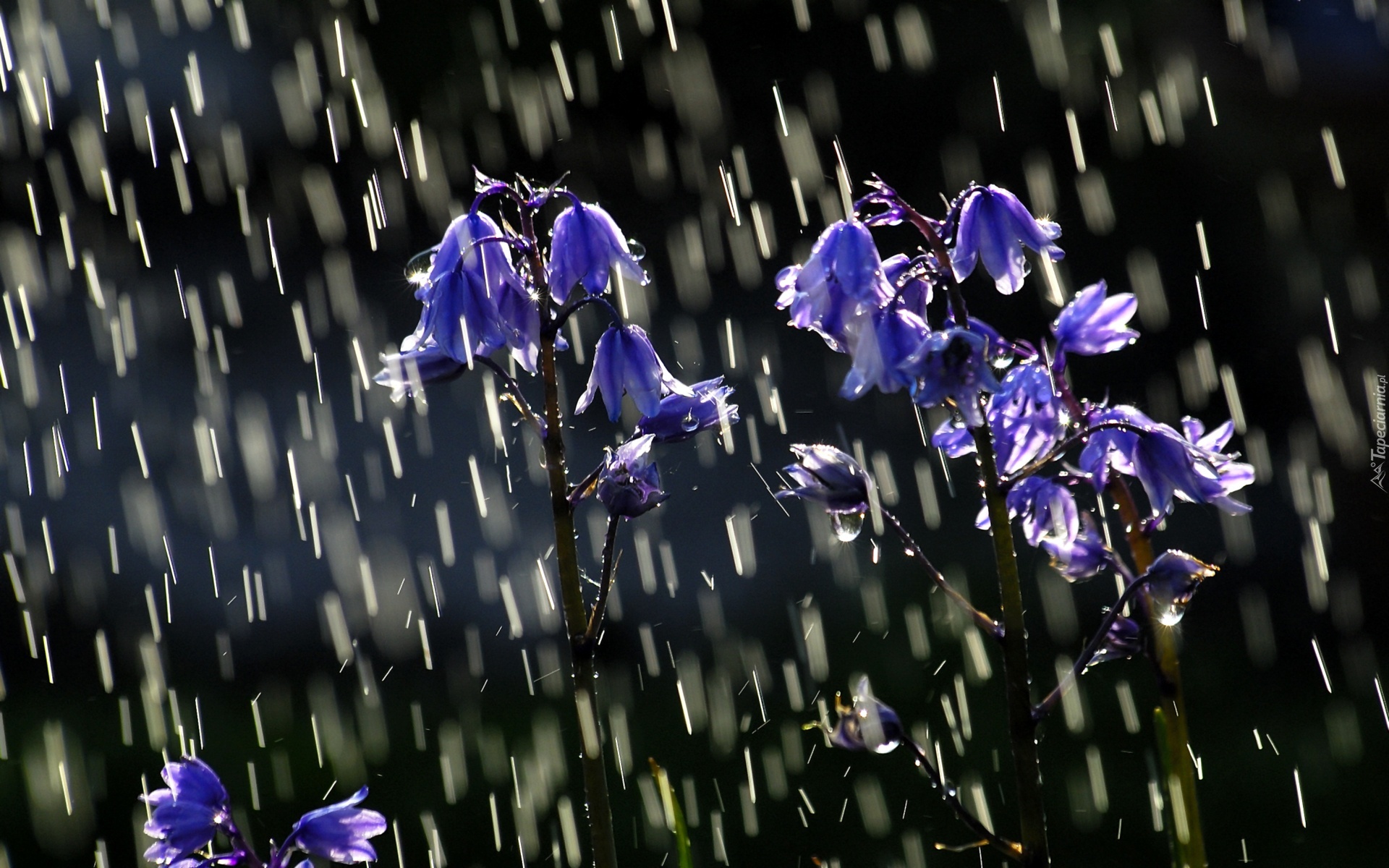 Edytor tapety: Deszcz, Niebieskie, Kwiatuszki, Dzwoneczki