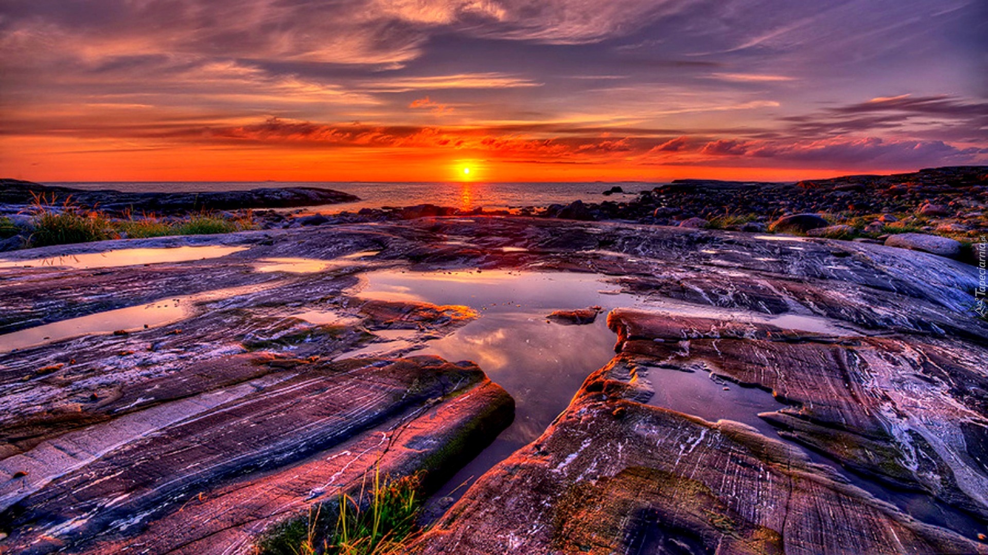 Edytor tapety: Morze, Kamienie, Zachód, Słońca