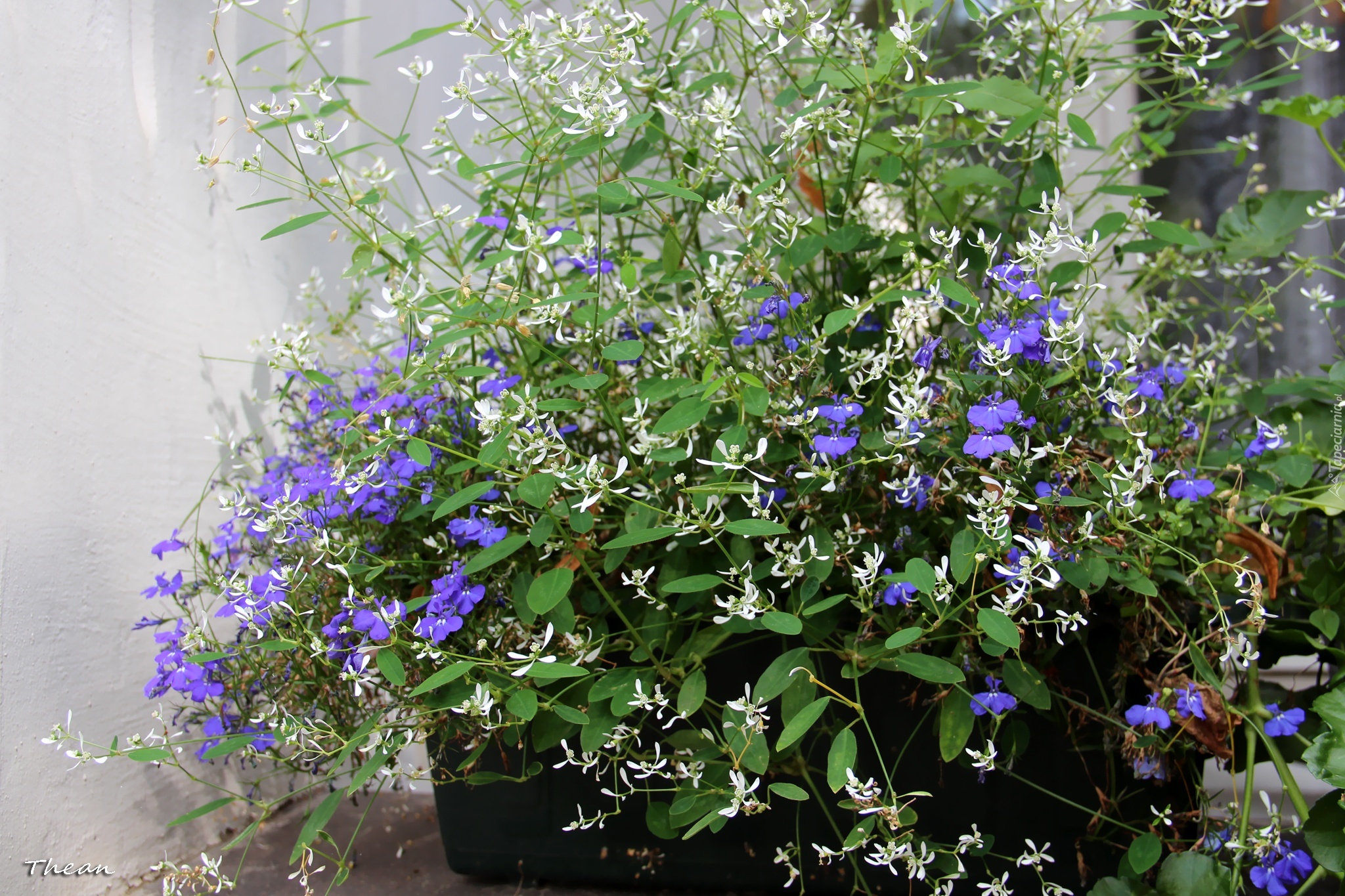 Edytor tapety: Białe, Niebieskie, Kwiaty, Donica