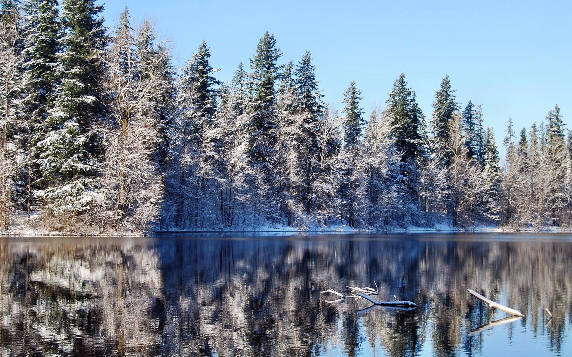 Edytor tapety: Zima, Jezioro, Las, Odbicie