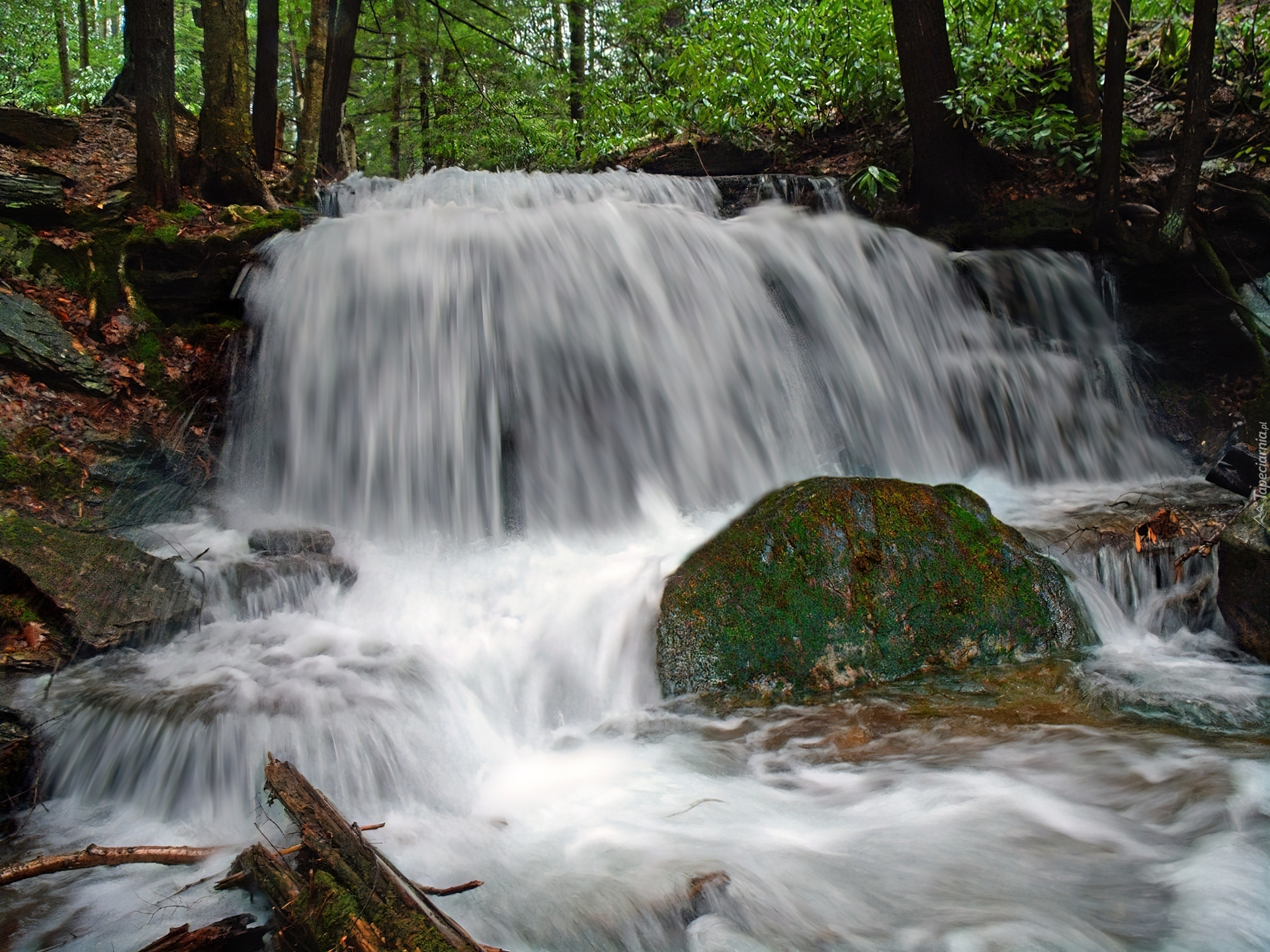 Edytor tapety: Wodospad, Kamienie, Las