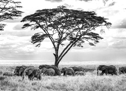 Edytor tapety: Słonie, Drzewo, Zachmurzone, Niebo