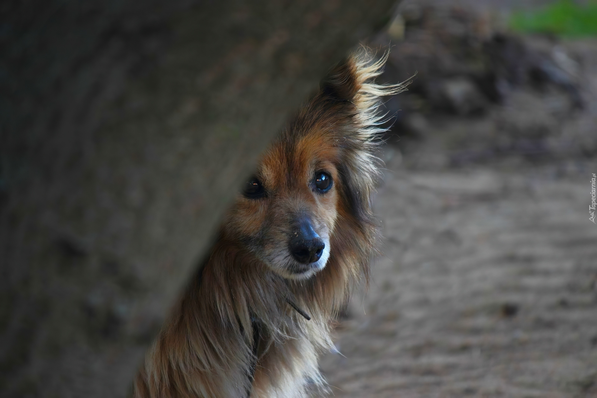Edytor tapety: Zapatrzony, Pies, Drzewo