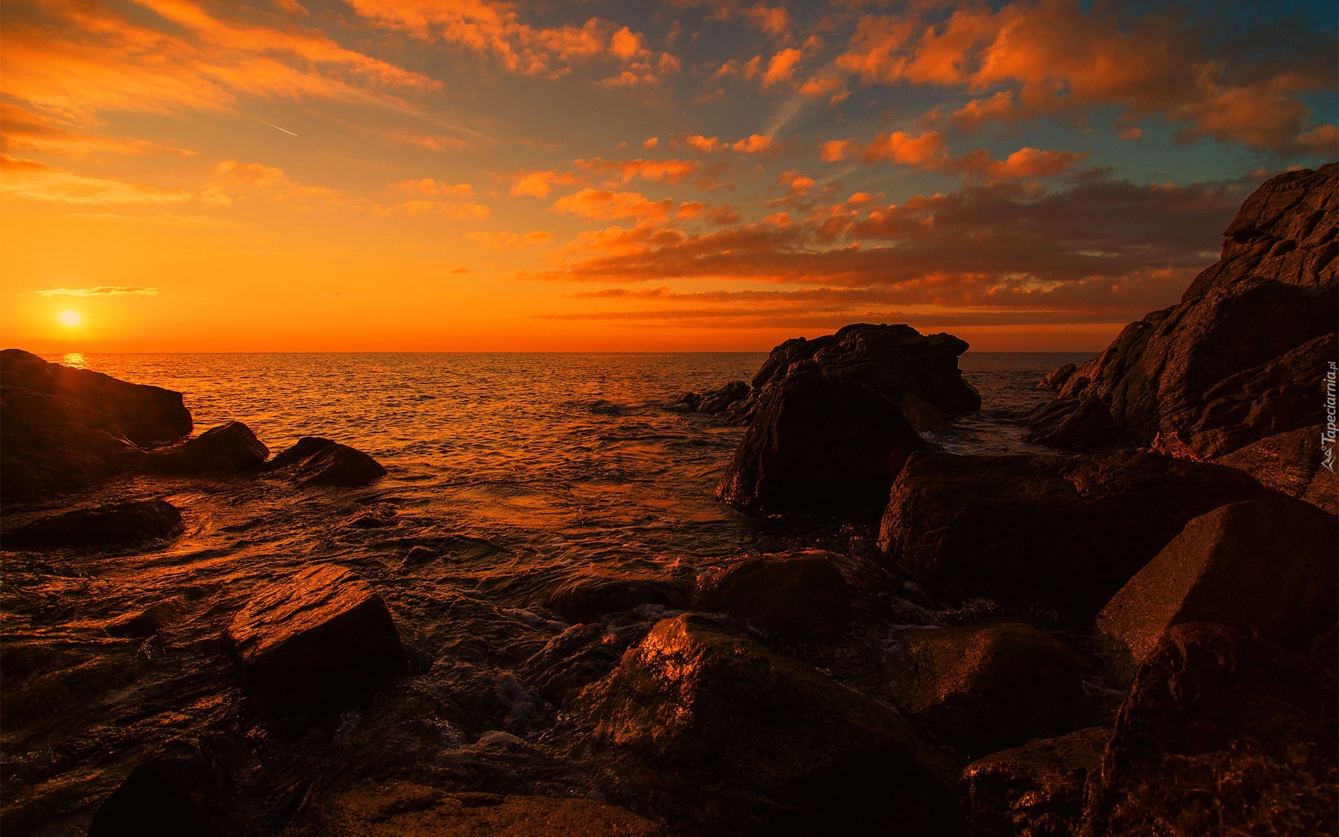 Edytor tapety: Zachód Słońca, Morze, Skały
