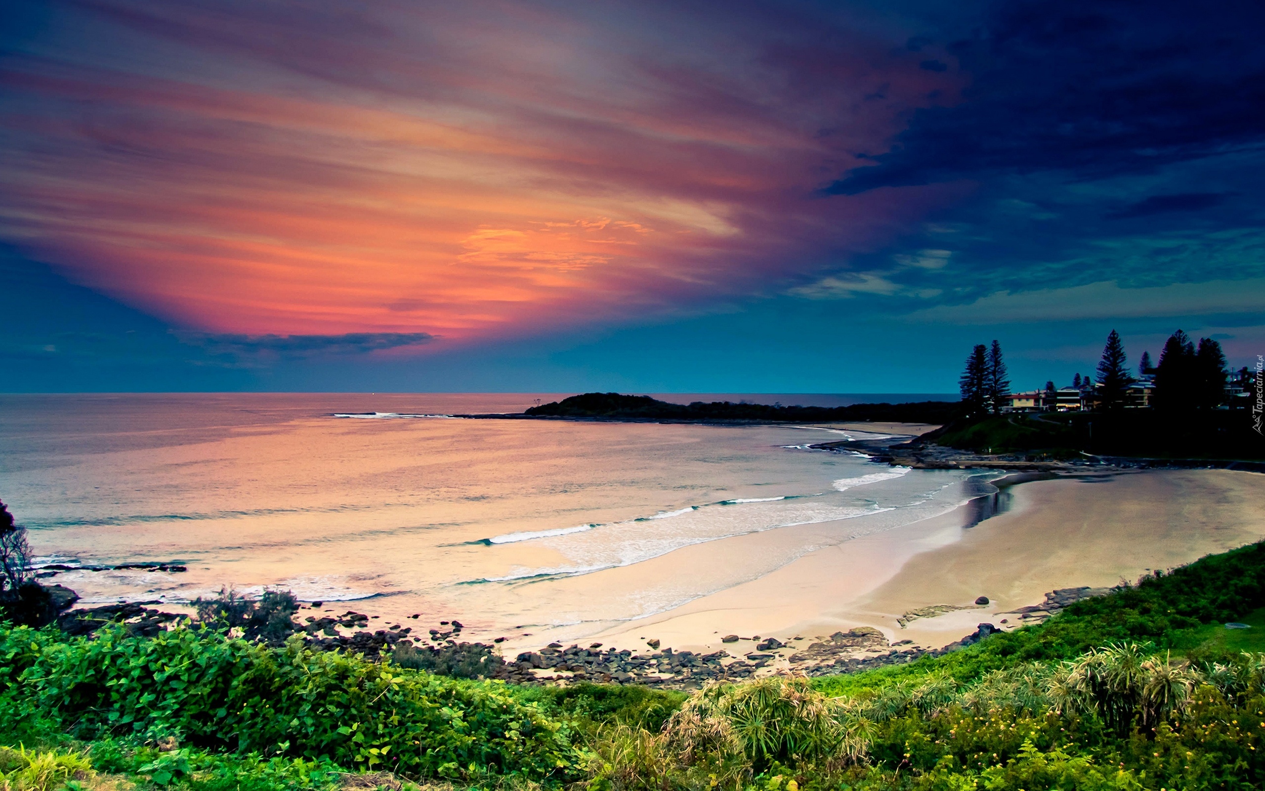 Edytor tapety: Morze, Roślinność, Zachód Słońca