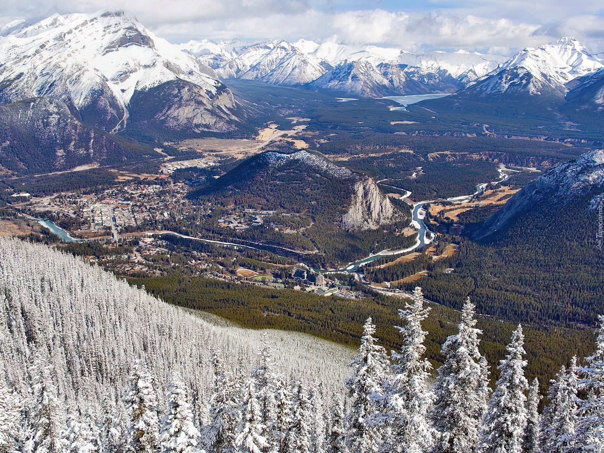 Edytor tapety: Zima, Góry, Las, Potok