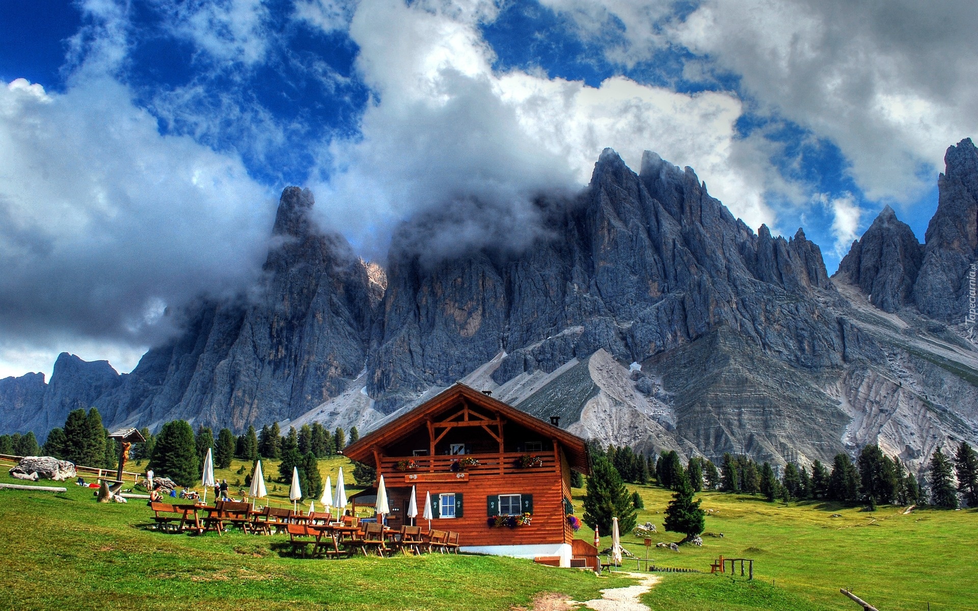 Edytor tapety: Góry, Chmury, Restauracja, Drzewa, Austria