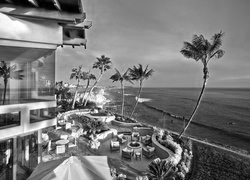Edytor tapety: Morze, Hotel, Taras, Palmy