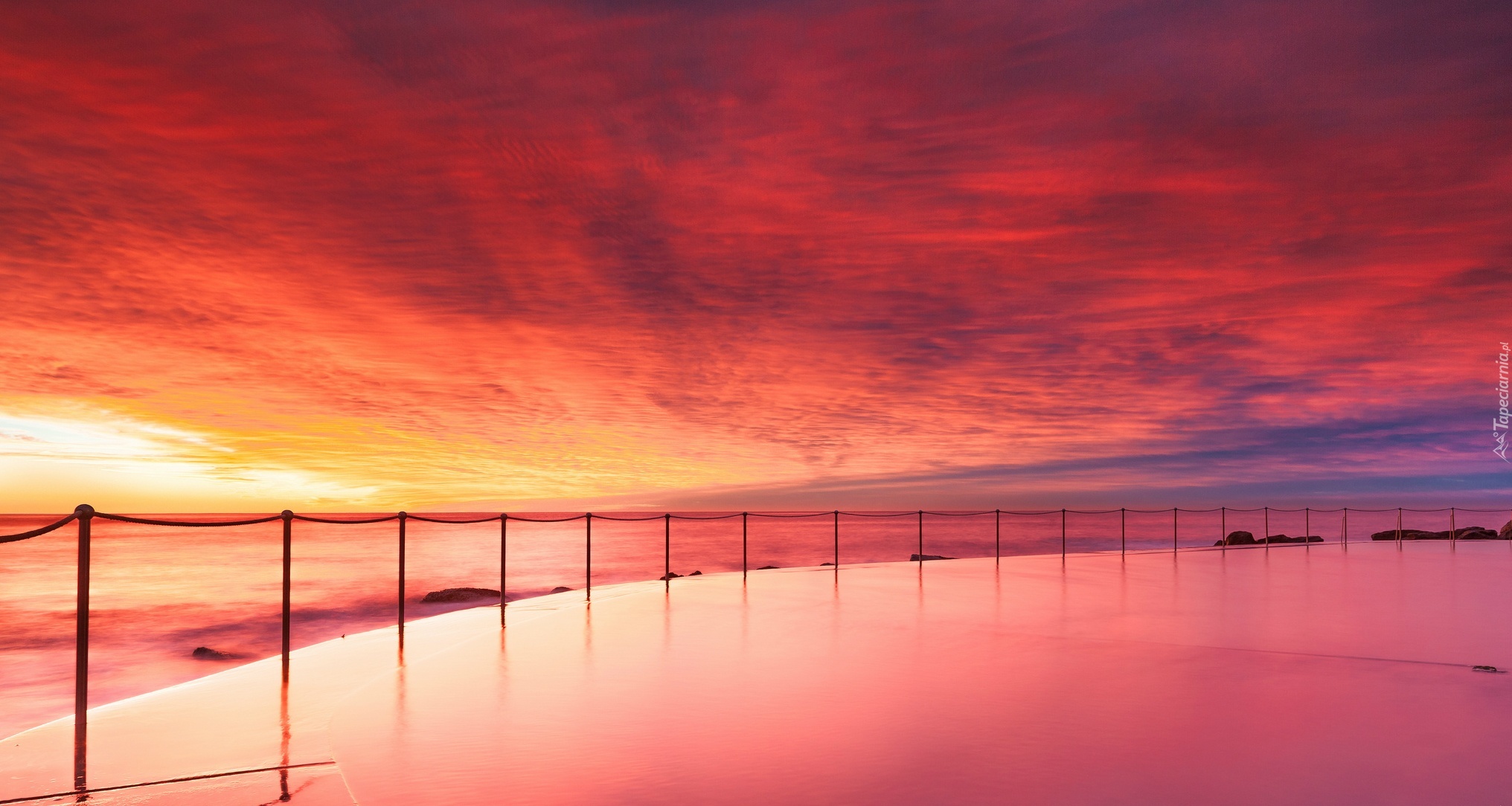 Edytor tapety: Zachód, Słońca, Morze, Płotek