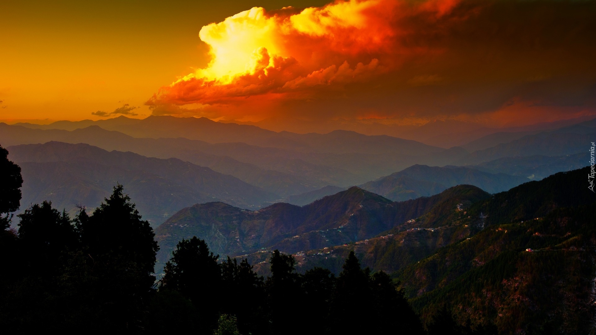 Edytor tapety: Góry, Drzewa, Chmury, Niebo