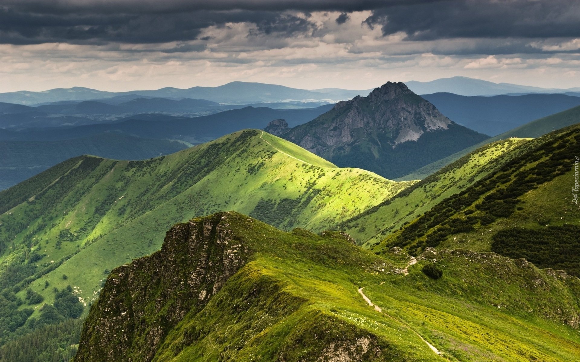 Edytor tapety: Pasmo, Górskie, Ścieżka, Chmury