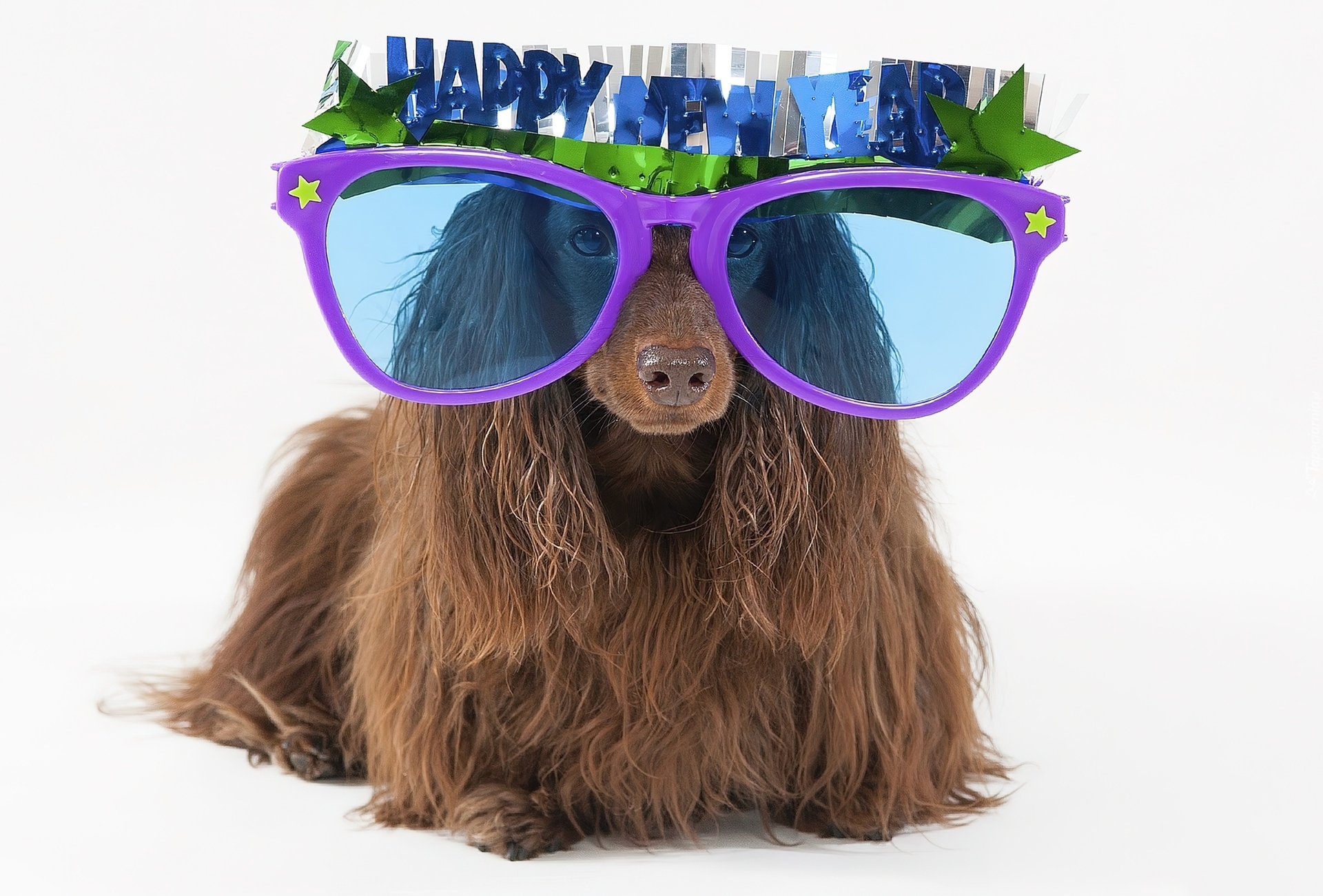 Edytor tapety: Pies, Okulary, Nowy, Rok