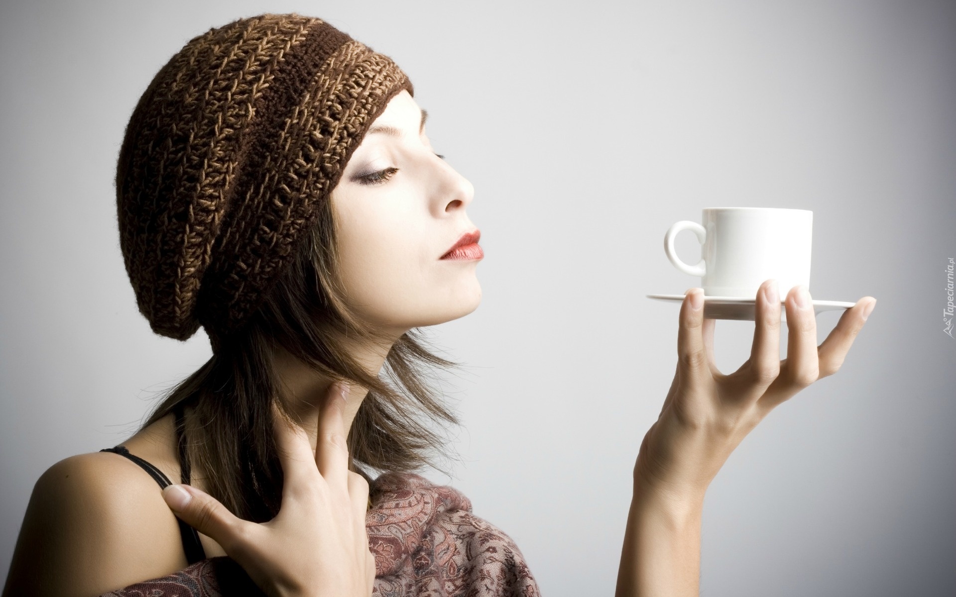 Edytor tapety: Kobieta, Filiżanka, Kawy