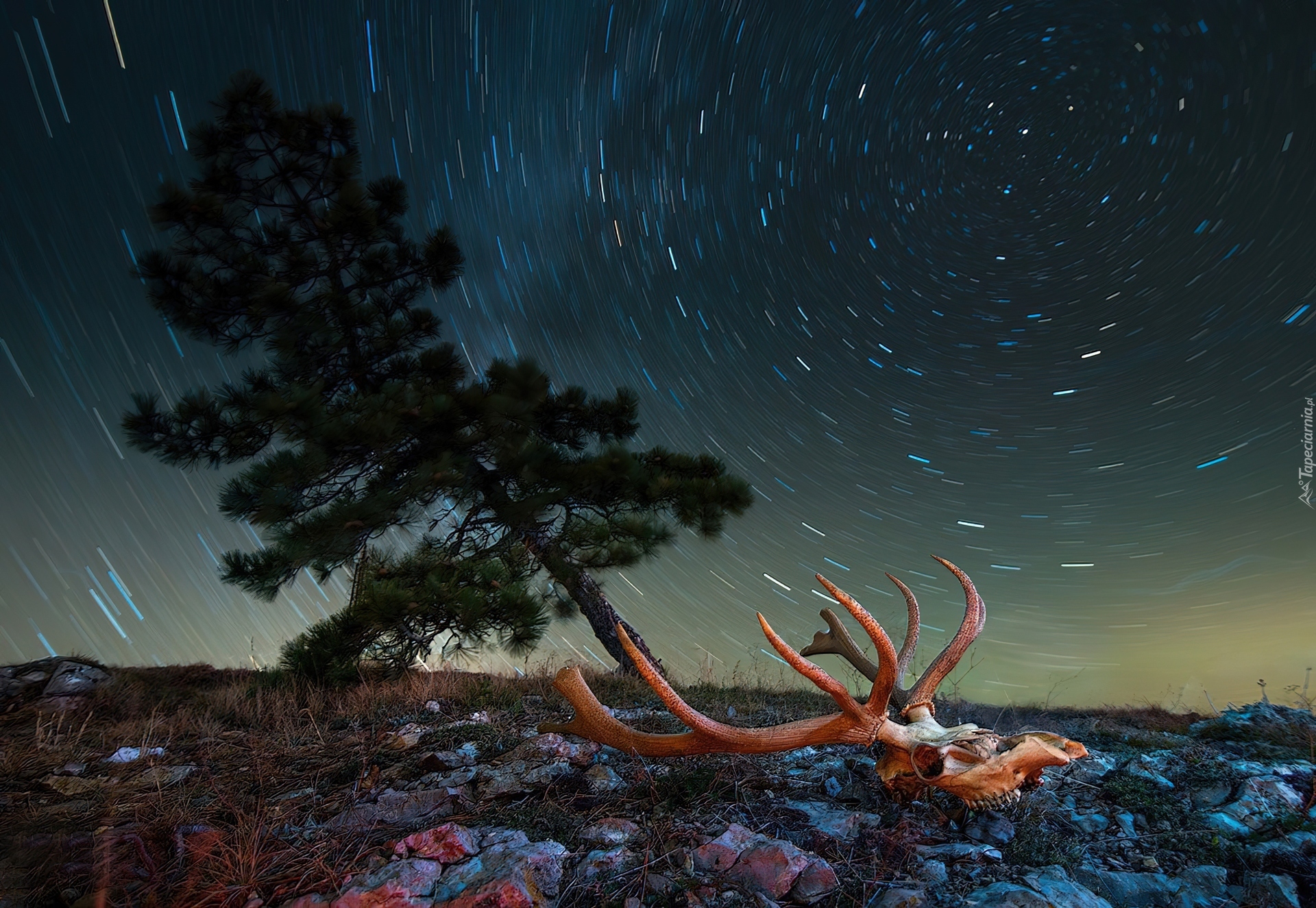 Edytor tapety: Drzewo, Kamienie, Deszcz, Czaszka, Jelenia