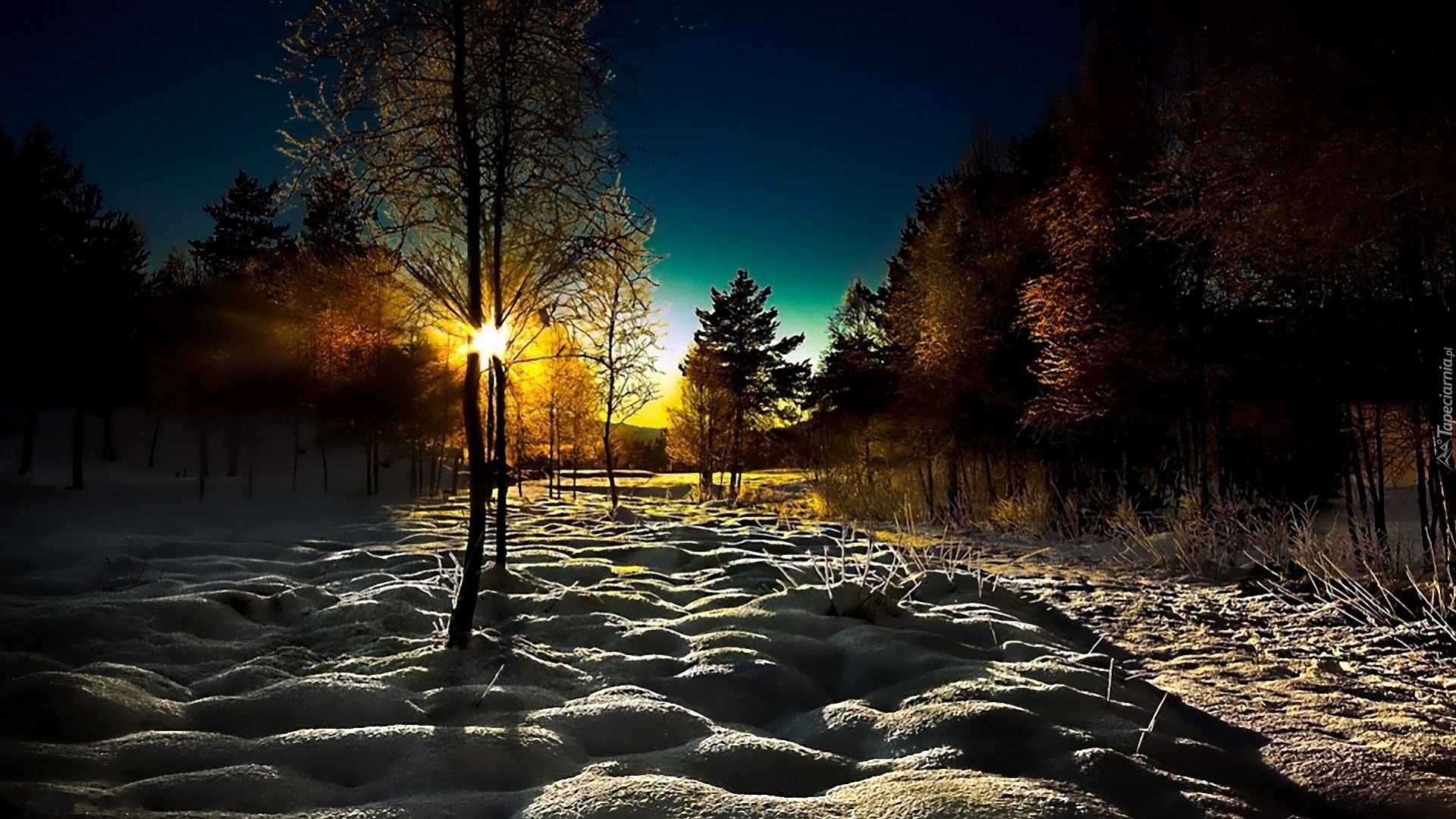 Edytor tapety: Park, Drzewa, Zachód, Słońca, Zima
