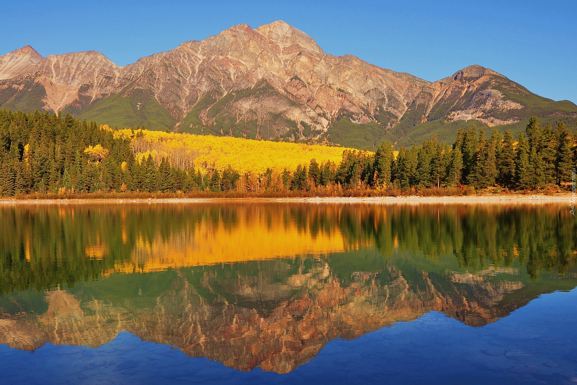 Edytor tapety: Góry, Jezioro, Lasy, Odbicie