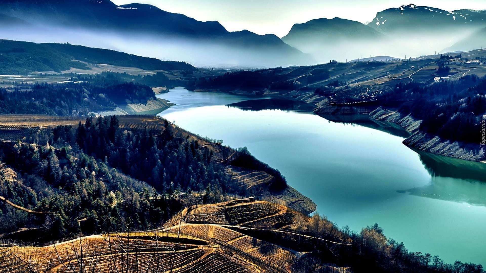 Edytor tapety: Góry, Rzeka, Las