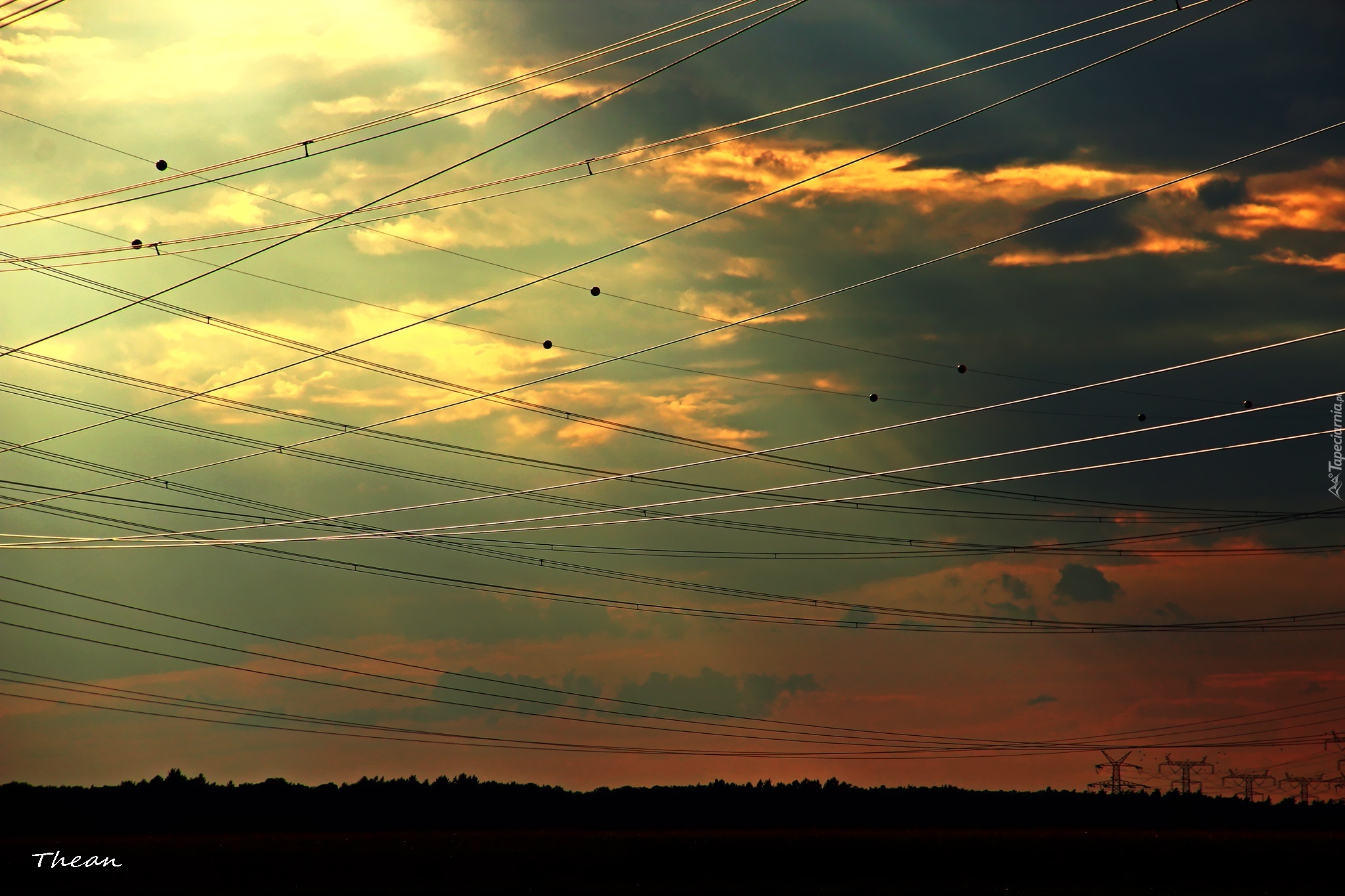 Edytor tapety: Chmury, Niebo, Promienie, Linie, Wysokiego, Napięcia