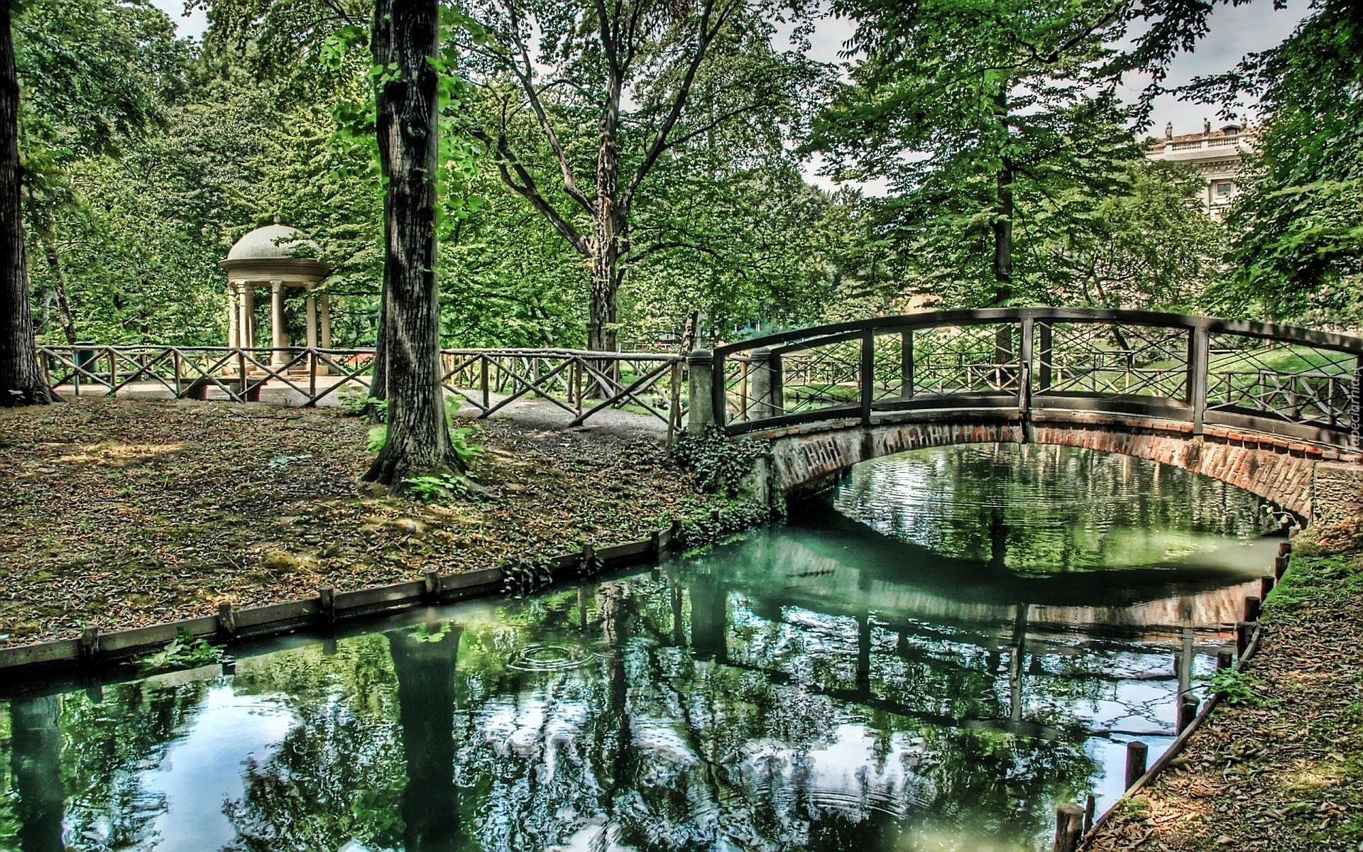Edytor tapety: Park, Drzewa, Most, Rzeka, Odbicie
