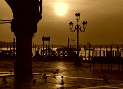 Edytor tapety: Promenada, Rzeka, Zachód, Słońca, Latarnia
