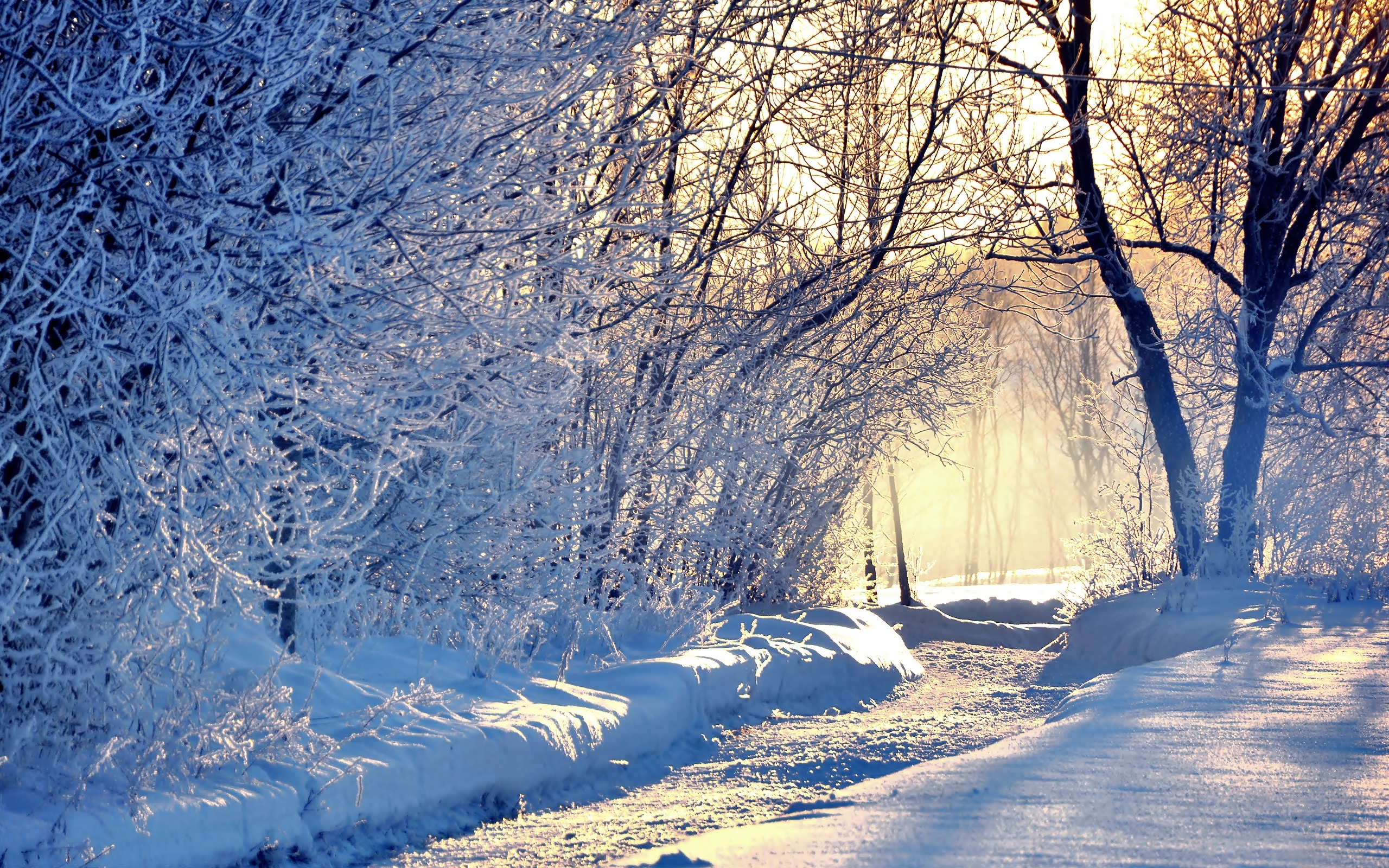 Edytor tapety: Park, Droga, Drzewa, Przebijające, Światło, Zima
