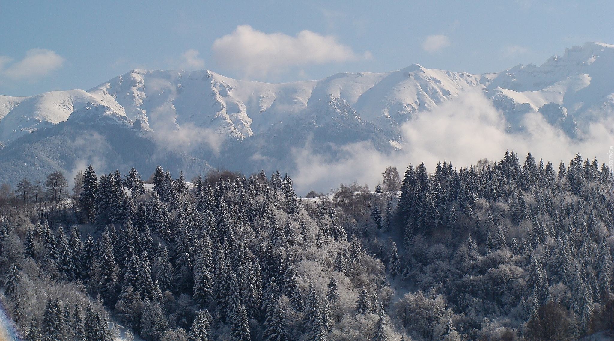 Edytor tapety: Góry, Mgła, Las, Zima