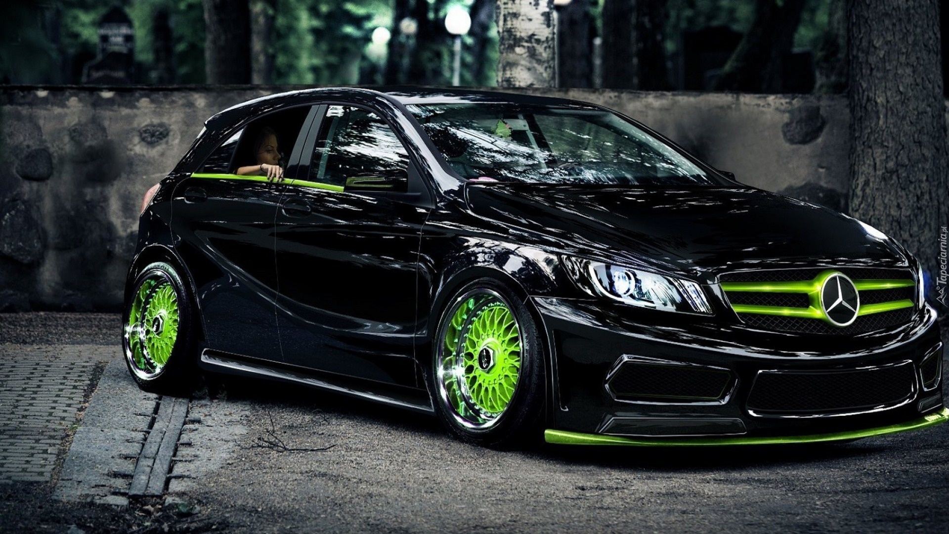 Edytor tapety: Mercedes, Benz, A-klasa, Czarny, Felgi, BBS