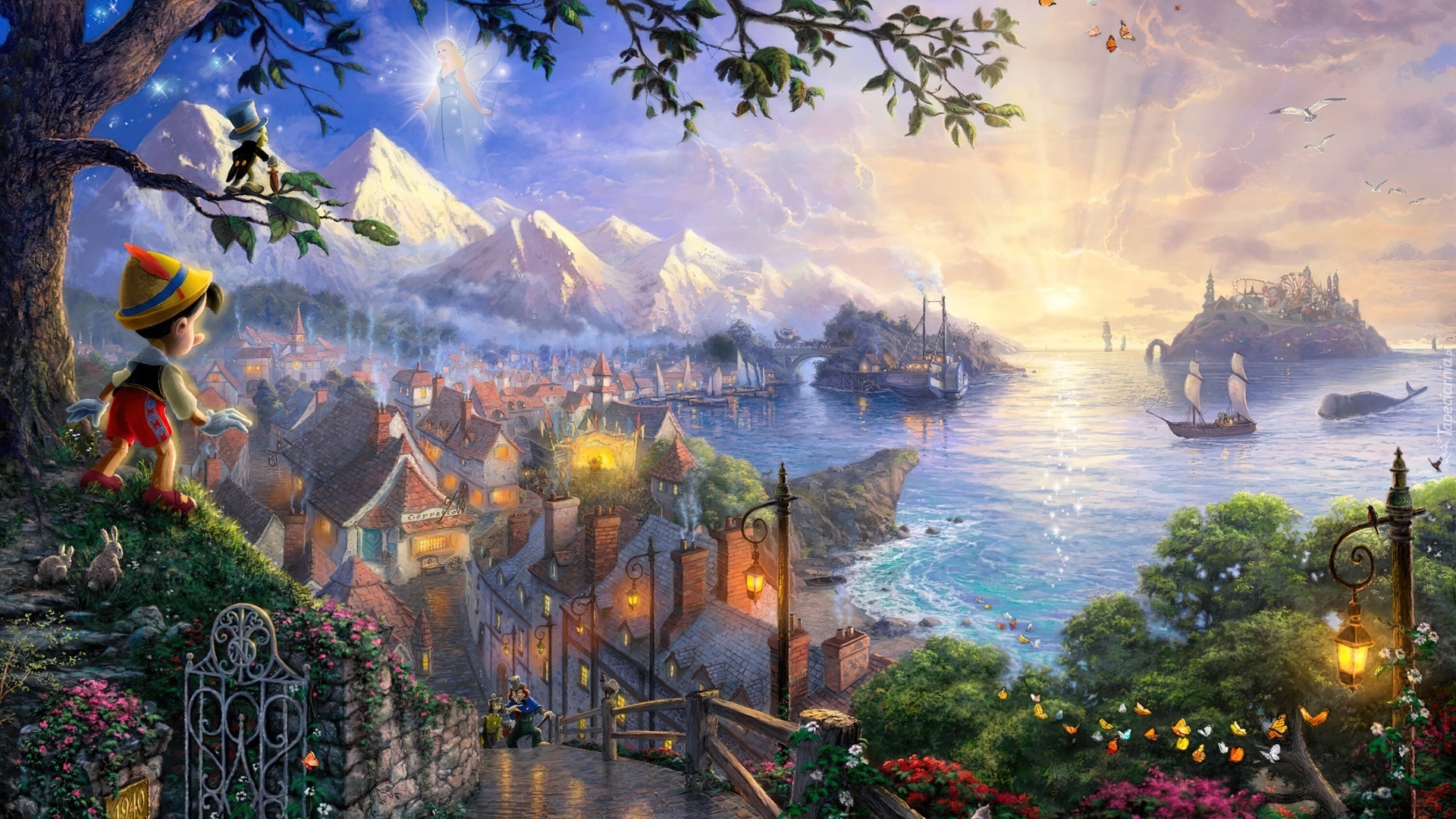 Edytor tapety: Thomas Kinkade, Disney, Pinokio, Wyspa