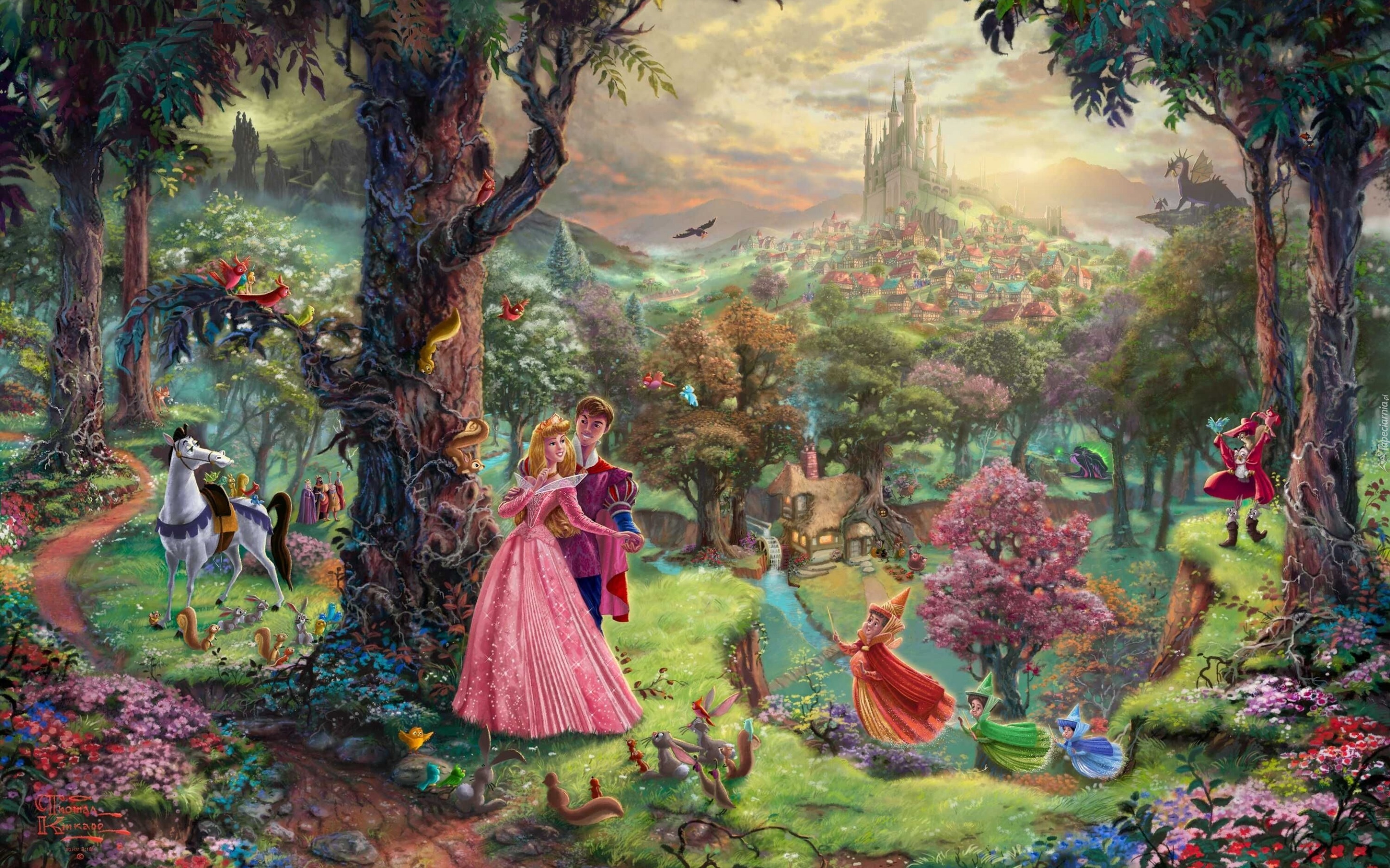 Edytor tapety: Thomas Kinkade, Disney, Śpiąca Królewna, Sleeping Beauty, Wróżki, Las