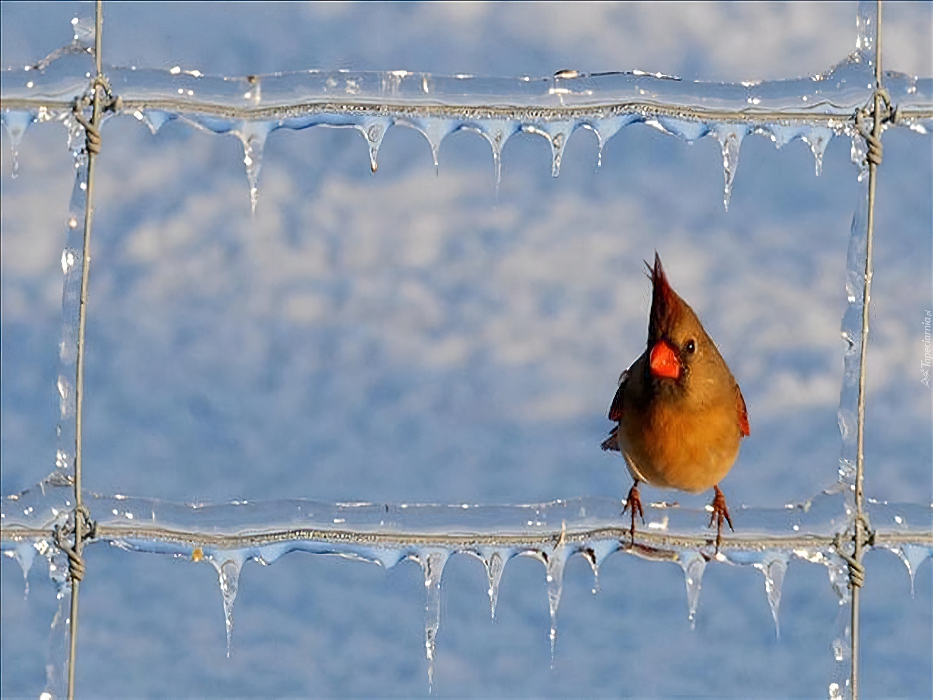 Edytor tapety: Ptak, Kardynał, Płot, Lód