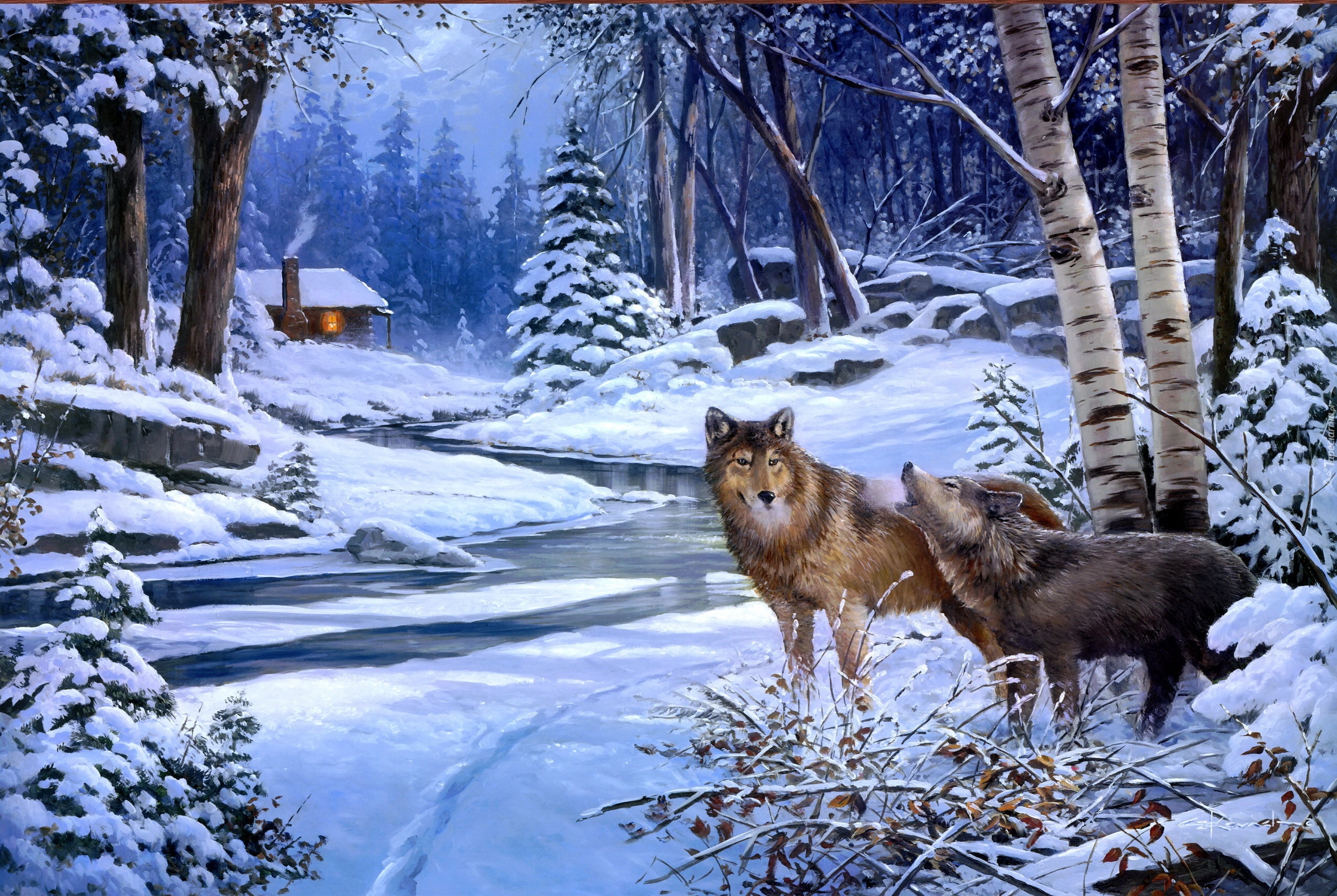 Edytor tapety: Wilki, Zima, Malarstwo