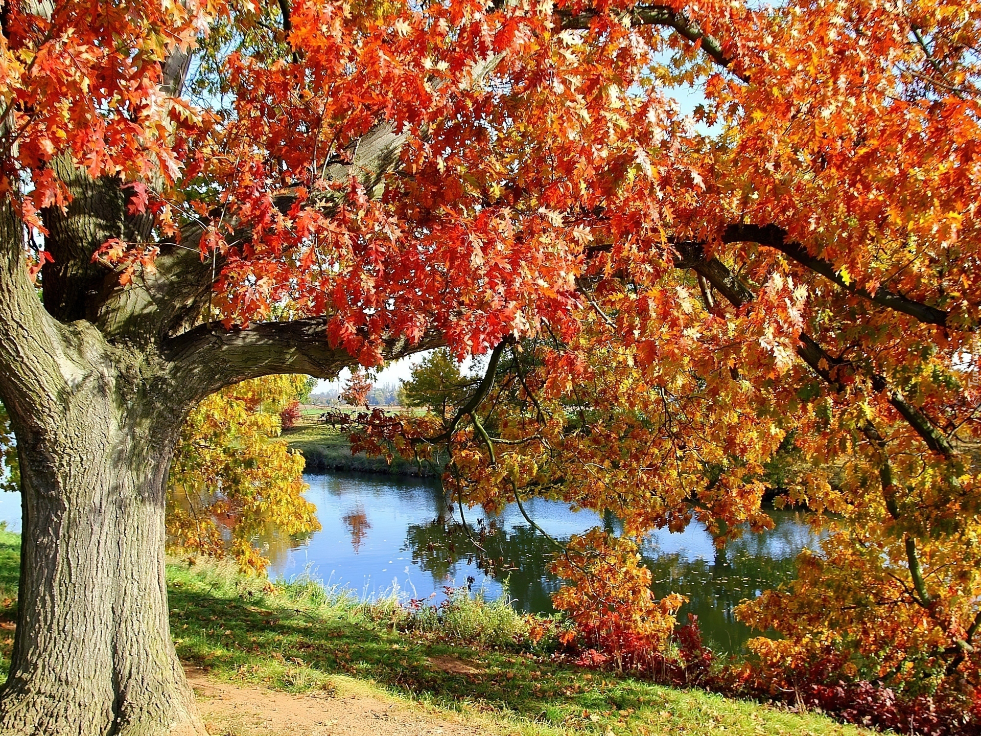 Edytor tapety: Stary, Jesienny, Dąb, Rzeka