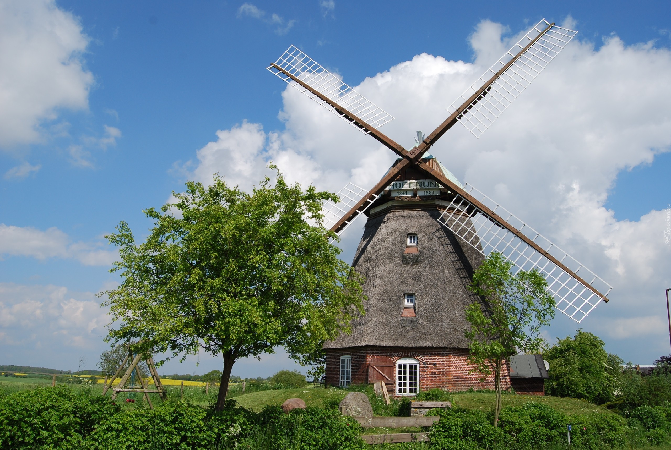 Edytor tapety: Wiatrak, Drzewa, Huśtawka